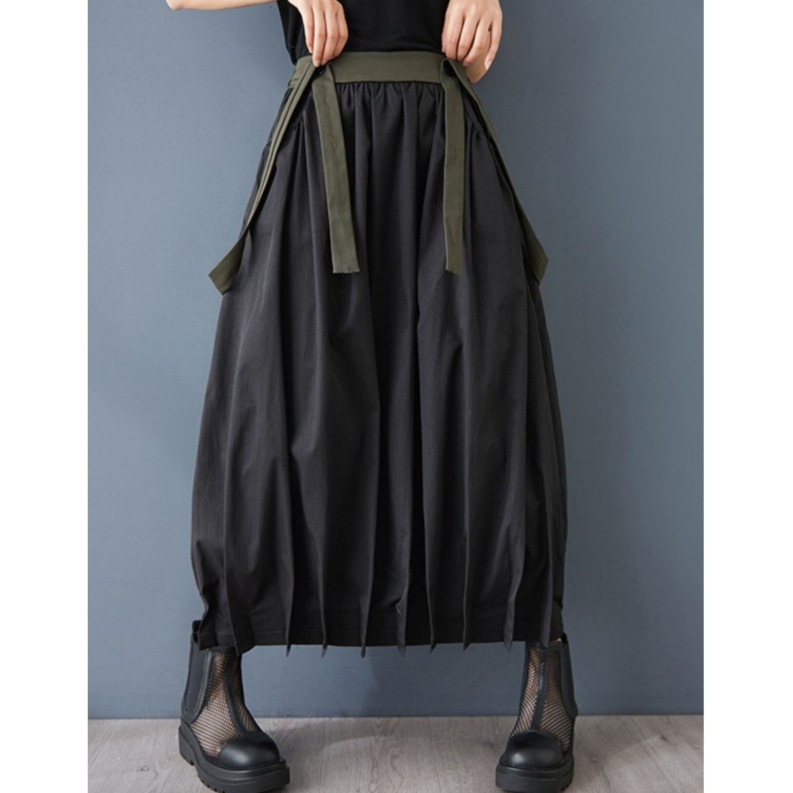 CONTRAST COCOON SUSPENDER MIDI SKIRT 2colors M-11877