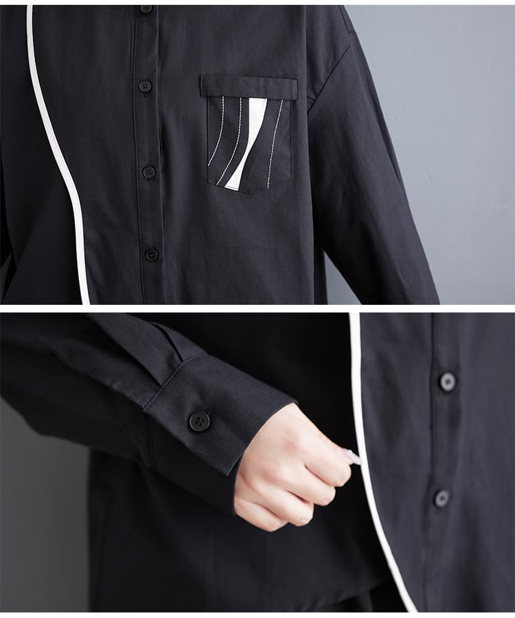 ASYMMETRIC CASUAL DESIGN SHIRT DESIGN 2colors M-8997