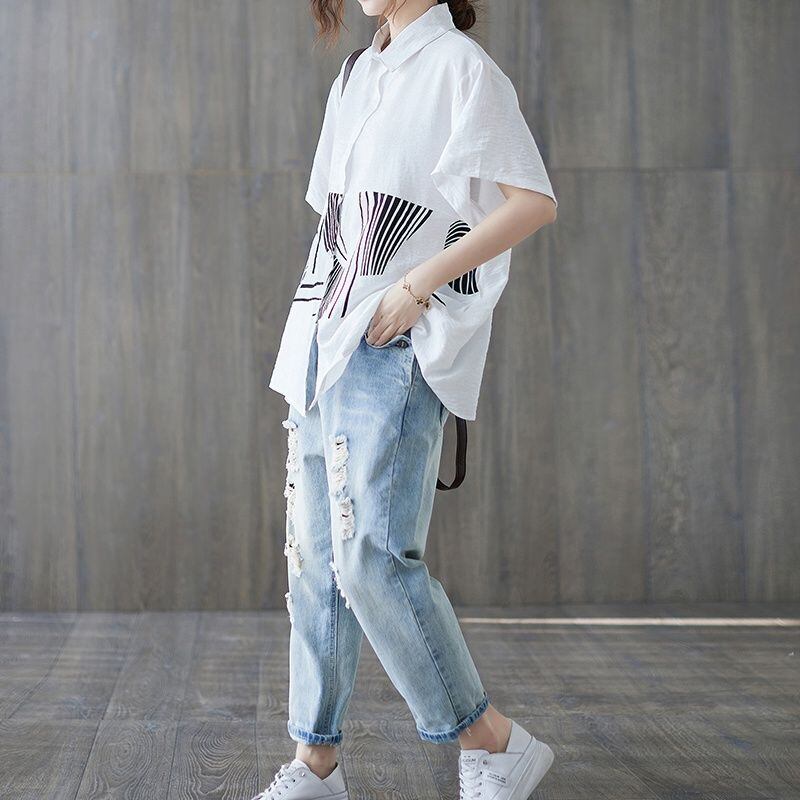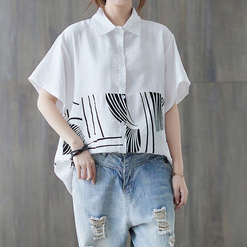 プリント生地のスティッチがアクセントになった、ポロ襟・半袖のデザインシャツです。和紙のようなシワ加工の生地が涼し気な、何にでも合わせやすいアイテムです。ブラックとホワイトの2色から選べます。