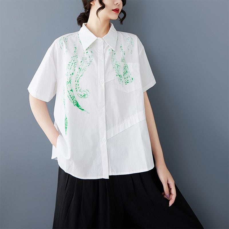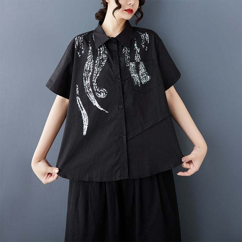アーティスティックなプリントがお洒落な、ポロ襟・半袖・ラウンドカットのデザインシャツです。斜めのプリーツ飾りがさりげないくアシンメトリックさを演出した、モードな印象のアイテムです。ブラックとホワイトの2色から選べます。 SIZE:※測り方によって2-3cmの差が生じる場合がございます。 【L】バスト118cm 肩幅50cm 袖丈19cm 着丈60/65cm 【XL】バスト120cm 肩幅51cm 袖丈20cm 着丈61/66cm COLOR:White、Black 素材:ポリエステル60%、綿40% モデル着用サイズ:L モデル情報:身長161cm 体重49kg お届けについて こちらの商品は海外店舗より直接発送となる為、 ご決済から到着までは、多くの場合【10日-2週間前後】でお届けしております。 ※在庫状況や輸送の混雑により、4週間前後かかる場合がございます。 注意事項 ・商品在庫切れにより注文キャンセルとさせていただく恐れもございますので、予めご了承くださいませ。 ・仕入れ工場を変えることがあるため、記載サイズと若干異なる場合がございます。 ・商品の色味は、お手持ちのスマートフォンの画面によって実物と若干異なる場合がございます。 ・イメージ違いやサイズ交換等、お客さまご都合による交換・返品はご遠慮ください。 送料について 全国一律580円。ただし10,000円以上のご注文で送料無料となります。 お支払い方法について ・クレジットカード決済(VISA/Mastercard/JCB/アメリカン・エクスプレス) ・コンビニ決済/Pay-easy ※前払いのお支払い方法 ・あと払い(Pay ID) ・キャリア決済(docomo/au/ソフトバンク/Y!mobile) 管理番号:M-13142