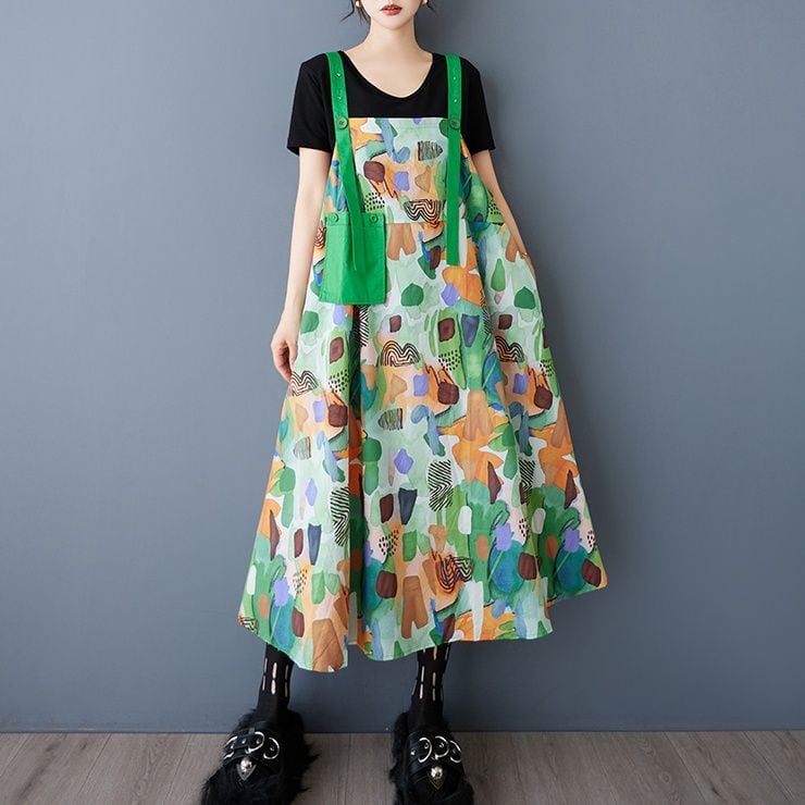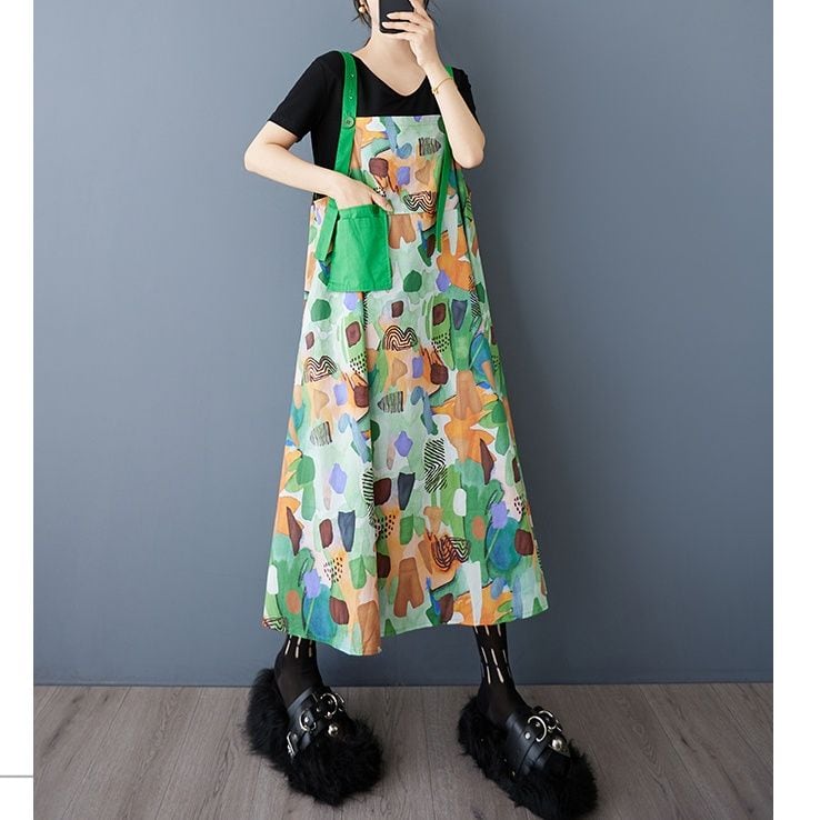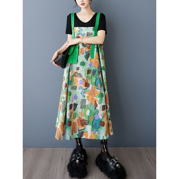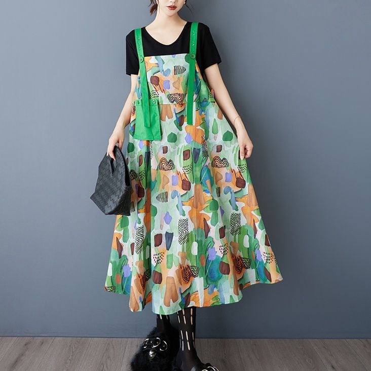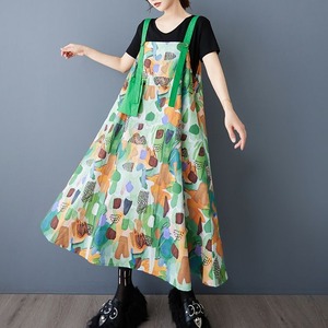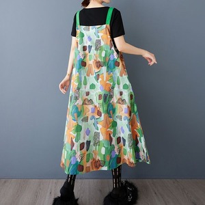 PRINT CONTRAST A-LINE STRAP JUMPER DRESS 1color M-13228