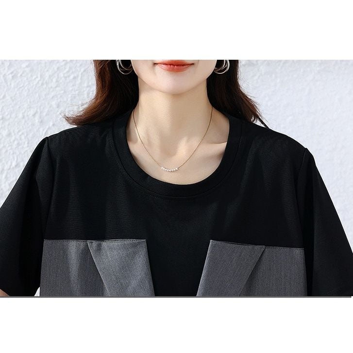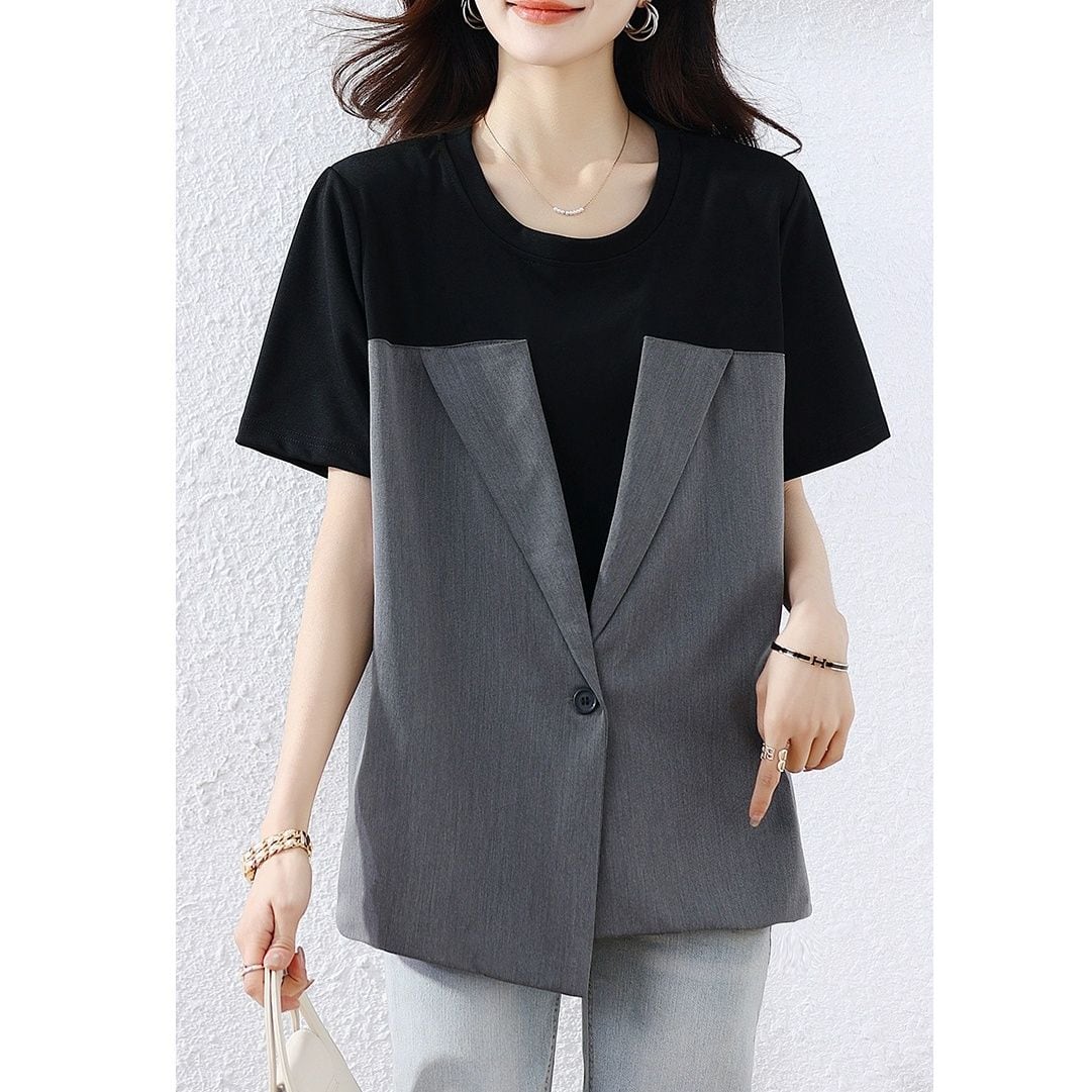 ブラックのTシャツとグレーのジャケットを組み合わせたデザインが特徴的な、ラウンドネック・半袖のプルオーバー・デザイントップです。クールで都会的な雰囲気のアイテムに仕上がっています。 SIZE:※測り方によって2-3cmの差が生じる場合がございます。 【L】バスト108cm 肩幅40cm 袖丈23cm 着丈65cm 【XL】バスト112cm 肩幅41cm 袖丈23.5cm 着丈66cm 【2XL】バスト116cm 肩幅42cm 袖丈24cm 着丈67cm 【3XL】バスト120cm 肩幅43cm 袖丈24.5cm 着丈68cm 【4XL】バスト124cm 肩幅44cm 袖丈25cm 着丈69cm 【5XL】バスト128cm 肩幅45cm 袖丈25.5cm 着丈70cm COLOR:Design 素材:ポリエステル100% モデル情報:身長161cm 体重49kg お届けについて こちらの商品は海外店舗より直接発送となる為、 ご決済から到着までは、多くの場合【10日-2週間前後】でお届けしております。 ※在庫状況や輸送の混雑により、4週間前後かかる場合がございます。 注意事項 ・商品在庫切れにより注文キャンセルとさせていただく恐れもございますので、予めご了承くださいませ。 ・仕入れ工場を変えることがあるため、記載サイズと若干異なる場合がございます。 ・商品の色味は、お手持ちのスマートフォンの画面によって実物と若干異なる場合がございます。 ・イメージ違いやサイズ交換等、お客さまご都合による交換・返品はご遠慮ください。 送料について 全国一律580円。ただし10,000円以上のご注文で送料無料となります。 お支払い方法について ・クレジットカード決済(VISA/Mastercard/JCB/アメリカン・エクスプレス/ Diners Club) ・コンビニ決済/Pay-easy ※前払いのお支払い方法 ・あと払い(Pay ID) ・キャリア決済(docomo/au/ソフトバンク/Y!mobile) 管理番号:M-13610