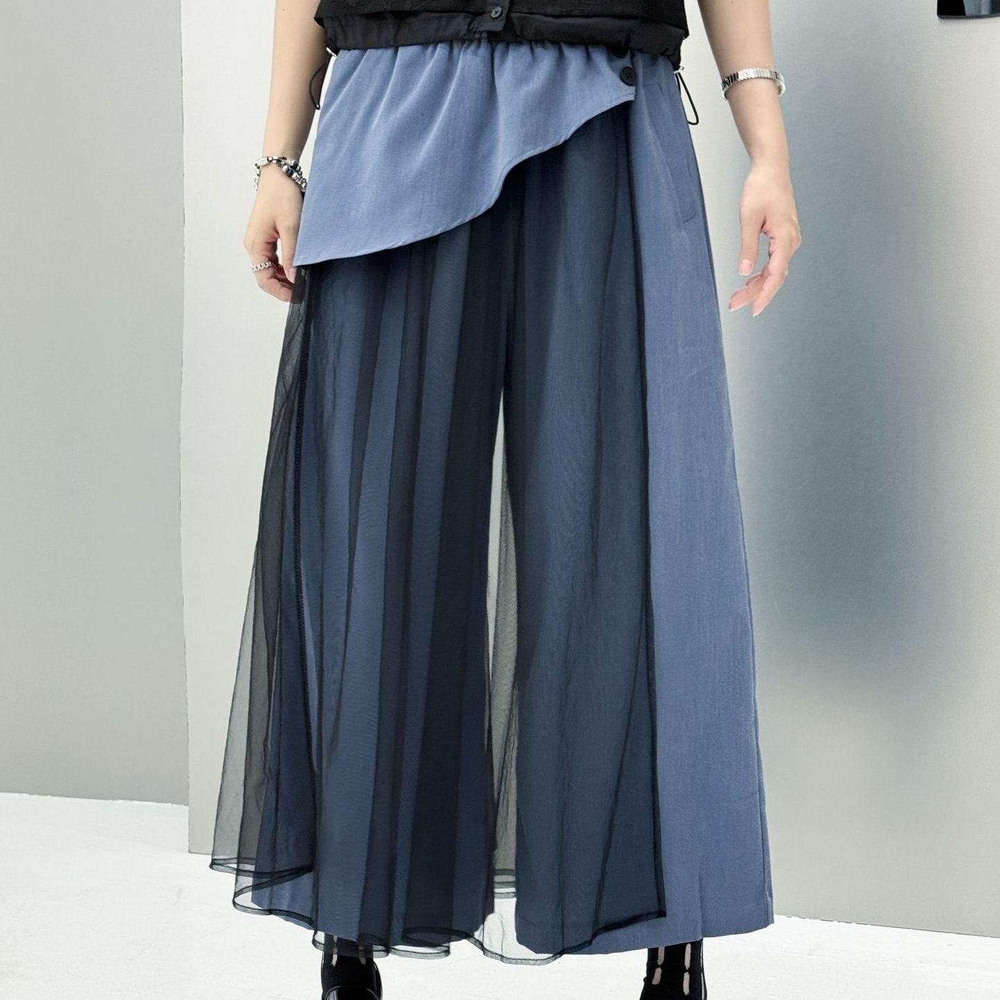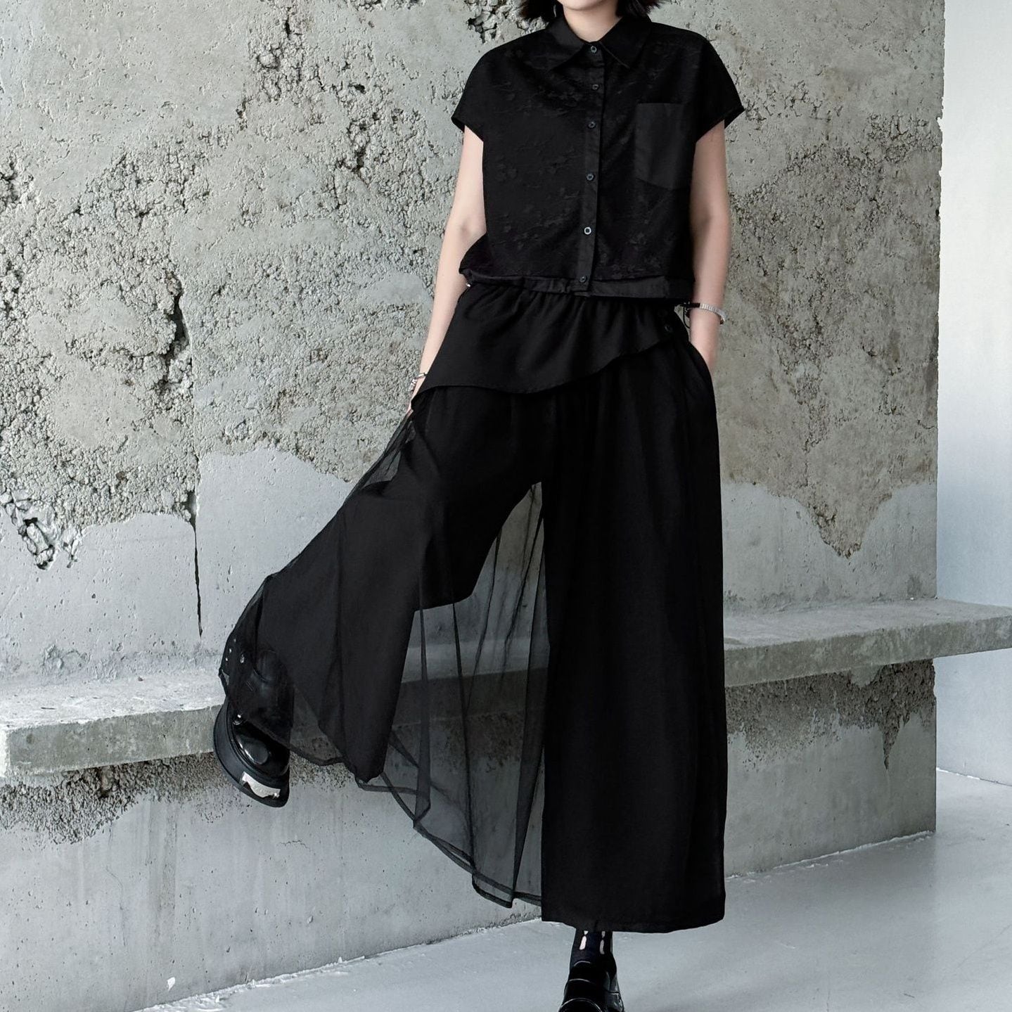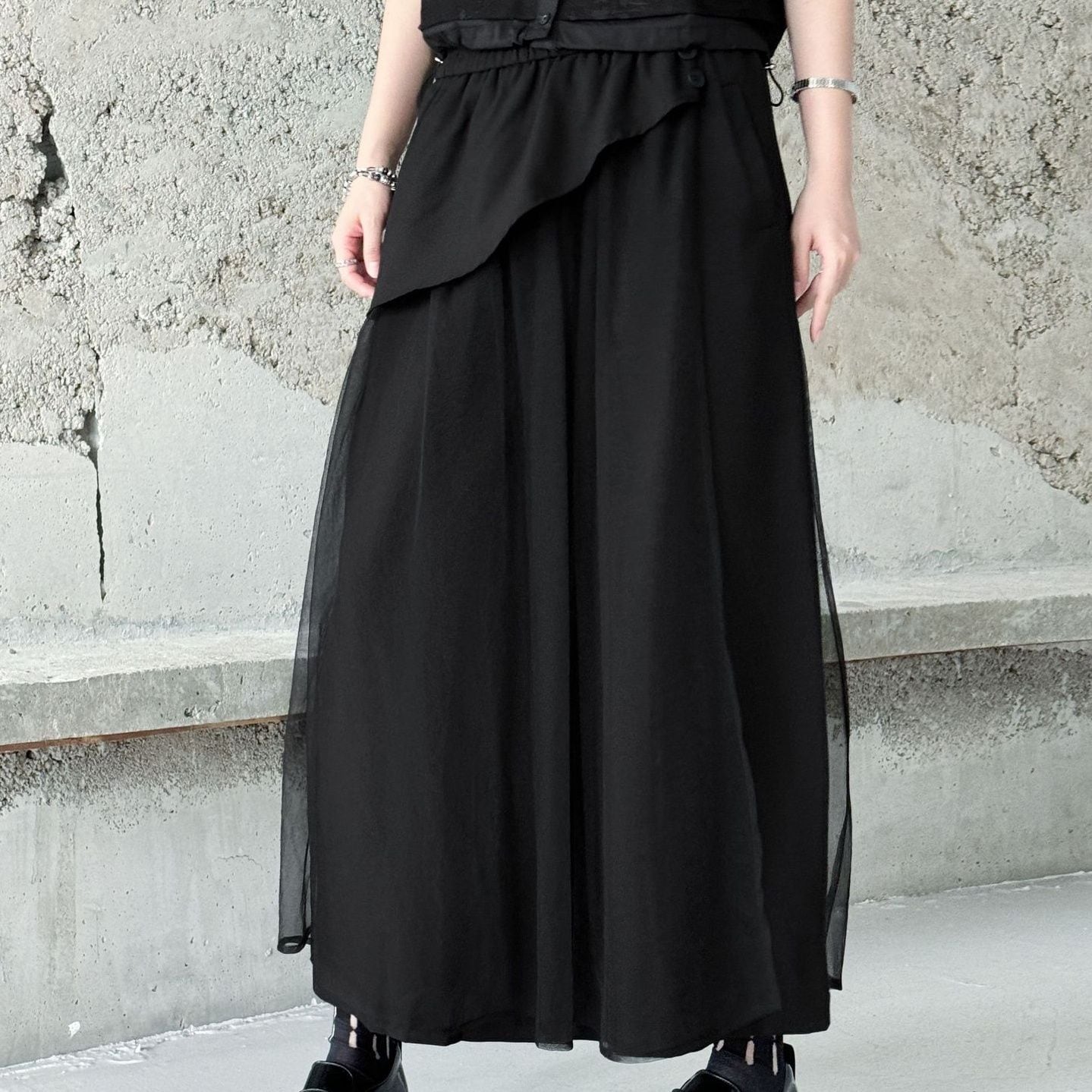 MESH LAYERED FLAP WIDE LEG CROPPED PANTS 3colors M-13625