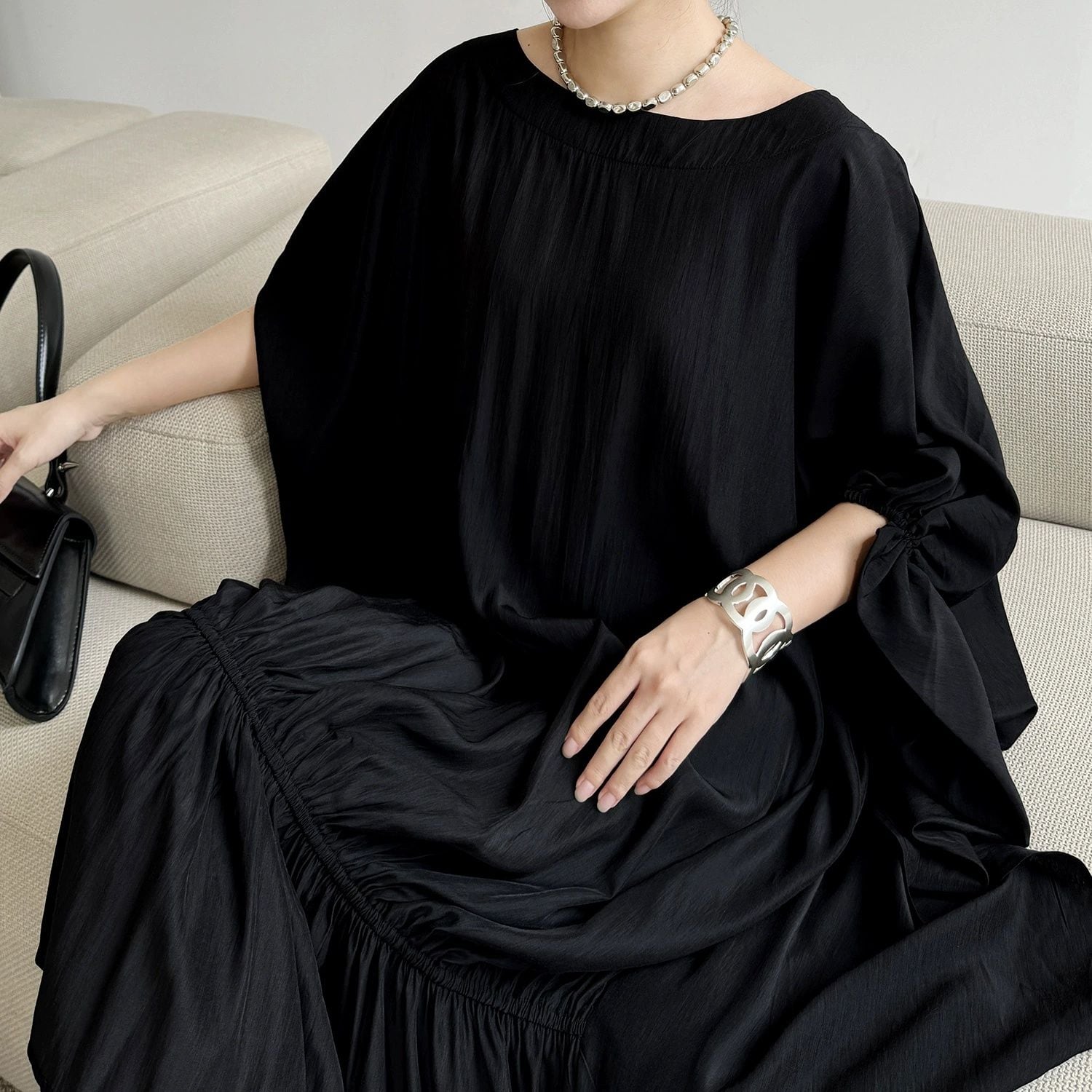 BLACK BOAT NECK BAT STYLE MIDI DRESS 1color M-13641