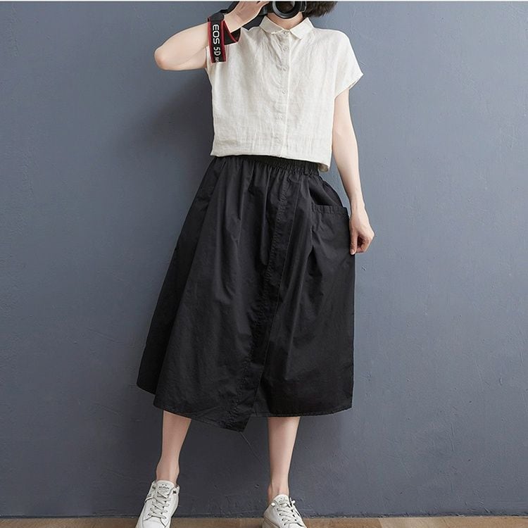 巻きスカートのようなデザインがキュートな、単色・Aライン・ミドル丈のカジュアルスカートです。ウエストはゴムなので、着脱が簡単で履き心地が良いです。シンプルで何にでも合わせやすい、リラックスした印象のアイテムです。ブラックとグリーンの2色から選べます。 SIZE:※測り方によって2-3cmの差が生じる場合がございます。 【L】ウエスト68-94cm ヒップ136cm 裾周り156cm 着丈70-76cm 【XL】ウエスト72-98cm ヒップ138cm 裾周り158cm 着丈72-78cm ※ウエストはゴム仕様のため伸縮性がございます。 COLOR:Green、Black 素材:ポリエステル100% モデル着用サイズ:L モデル情報:身長161cm 体重49kg お届けについて こちらの商品は海外店舗より直接発送となる為、 ご決済から到着までは、多くの場合【10日-2週間前後】でお届けしております。 ※在庫状況や輸送の混雑により、4週間前後かかる場合がございます。 注意事項 ・商品在庫切れにより注文キャンセルとさせていただく恐れもございますので、予めご了承くださいませ。 ・仕入れ工場を変えることがあるため、記載サイズと若干異なる場合がございます。 ・商品の色味は、お手持ちのスマートフォンの画面によって実物と若干異なる場合がございます。 ・イメージ違いやサイズ交換等、お客さまご都合による交換・返品はご遠慮ください。 送料について 全国一律580円。ただし10,000円以上のご注文で送料無料となります。 お支払い方法について ・クレジットカード決済(VISA/Mastercard/JCB/アメリカン・エクスプレス/ Diners Club) ・コンビニ決済/Pay-easy ※前払いのお支払い方法 ・あと払い(Pay ID) ・キャリア決済(docomo/au/ソフトバンク/Y!mobile) 管理番号:M-13782