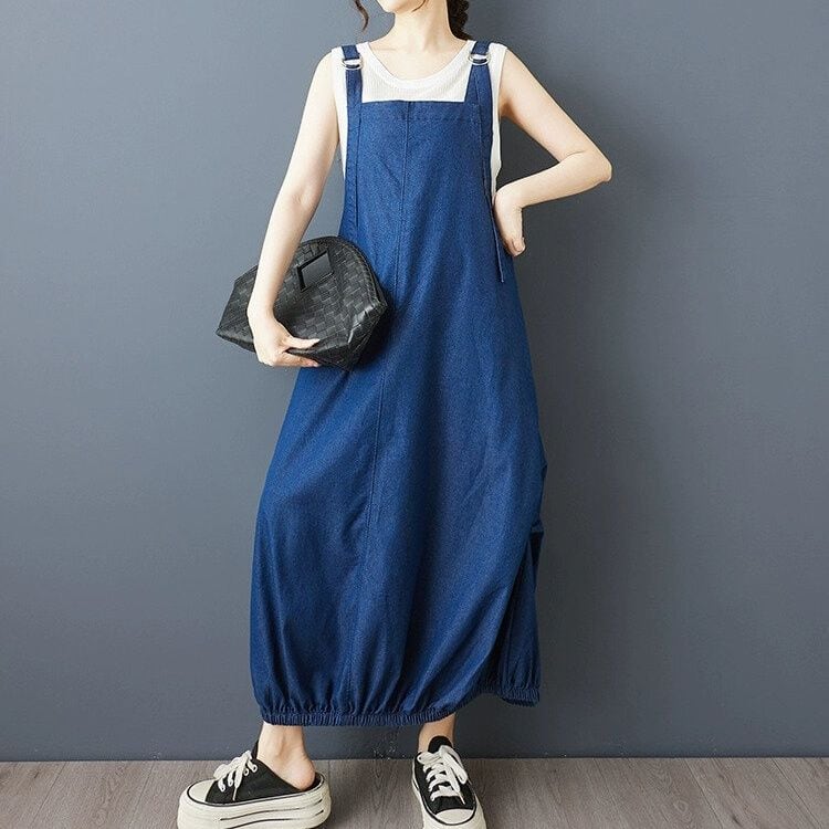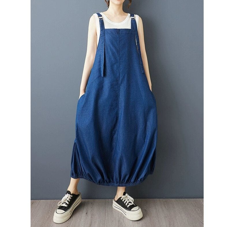 BLUE DENIM COCCOON LONG STRAP JUMPER DRESS 1color M-13943