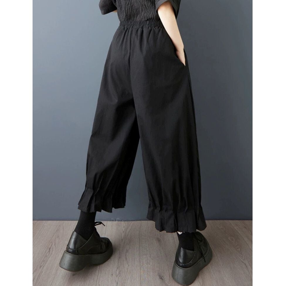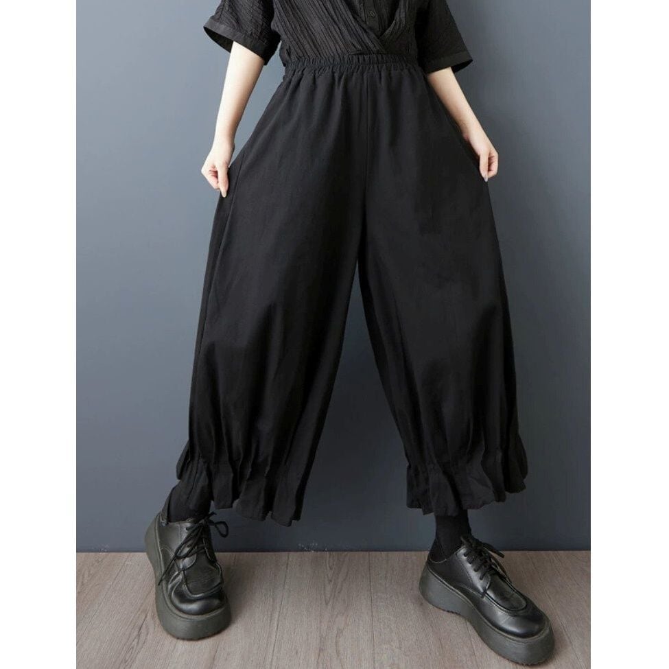 スズランのような裾のシルエットがキュートな、ランタンスタイル・ワイドレッグ・クロップドパンツです。ウエストはゴムなので、着脱が簡単で履き心地が良いです。ブラックの単色でコーディネートしやすい、オシャレなアイテムです。 SIZE:※測り方によって2-3cmの差が生じる場合がございます。 【M】ウエスト62-81cm ヒップ112cm 着丈80cm 【L】ウエスト63-82cm ヒップ116cm 着丈81cm 【XL】ウエスト64-83cm ヒップ120cm 着丈82cm 【2XL】ウエスト65-84cm ヒップ124cm 着丈83cm ※ウエストはゴム仕様のため伸縮性がございます。 COLOR:Black 素材:ポリエステル100% モデル着用サイズ:L モデル情報:身長161cm 体重49kg お届けについて こちらの商品は海外店舗より直接発送となる為、 ご決済から到着までは、多くの場合【10日-2週間前後】でお届けしております。 ※在庫状況や輸送の混雑により、4週間前後かかる場合がございます。 注意事項 ・商品在庫切れにより注文キャンセルとさせていただく恐れもございますので、予めご了承くださいませ。 ・仕入れ工場を変えることがあるため、記載サイズと若干異なる場合がございます。 ・商品の色味は、お手持ちのスマートフォンの画面によって実物と若干異なる場合がございます。 ・イメージ違いやサイズ交換等、お客さまご都合による交換・返品はご遠慮ください。 送料について 全国一律580円。ただし10,000円以上のご注文で送料無料となります。 お支払い方法について ・クレジットカード決済(VISA/Mastercard/JCB/アメリカン・エクスプレス/ Diners Club) ・コンビニ決済/Pay-easy ※前払いのお支払い方法 ・あと払い(Pay ID) ・キャリア決済(docomo/au/ソフトバンク/Y!mobile) 管理番号:M-13944