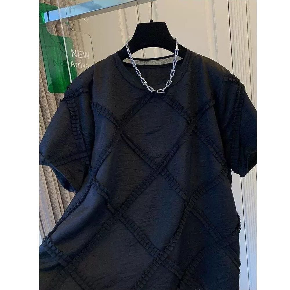 プリーツリボンで作られた立体的なダイヤモンドチェックがお洒落な、ラウンドネック・半袖・プルオーバートップです。単色のシンプルで上品なデザインで、何にでも合わせやすいアイテムです。ブラックとホワイトの2色から選べます。 SIZE:※測り方によって2-3cmの差が生じる場合がございます。 【M】バスト105cm 着丈65cm 【L】バスト110cm 着丈66cm 【XL】バスト115cm 着丈67cm 【2XL】バスト120cm 着丈68cm COLOR:Off White、Black 素材:ポリエステル100% お届けについて こちらの商品は海外店舗より直接発送となる為、 ご決済から到着までは、多くの場合【10日-2週間前後】でお届けしております。 ※在庫状況や輸送の混雑により、4週間前後かかる場合がございます。 注意事項 ・商品在庫切れにより注文キャンセルとさせていただく恐れもございますので、予めご了承くださいませ。 ・仕入れ工場を変えることがあるため、記載サイズと若干異なる場合がございます。 ・商品の色味は、お手持ちのスマートフォンの画面によって実物と若干異なる場合がございます。 ・イメージ違いやサイズ交換等、お客さまご都合による交換・返品はご遠慮ください。 送料について 全国一律580円。ただし10,000円以上のご注文で送料無料となります。 お支払い方法について ・クレジットカード決済(VISA/Mastercard/JCB/アメリカン・エクスプレス/ Diners Club) ・コンビニ決済/Pay-easy ※前払いのお支払い方法 ・あと払い(Pay ID) ・キャリア決済(docomo/au/ソフトバンク/Y!mobile) 管理番号:M-14024