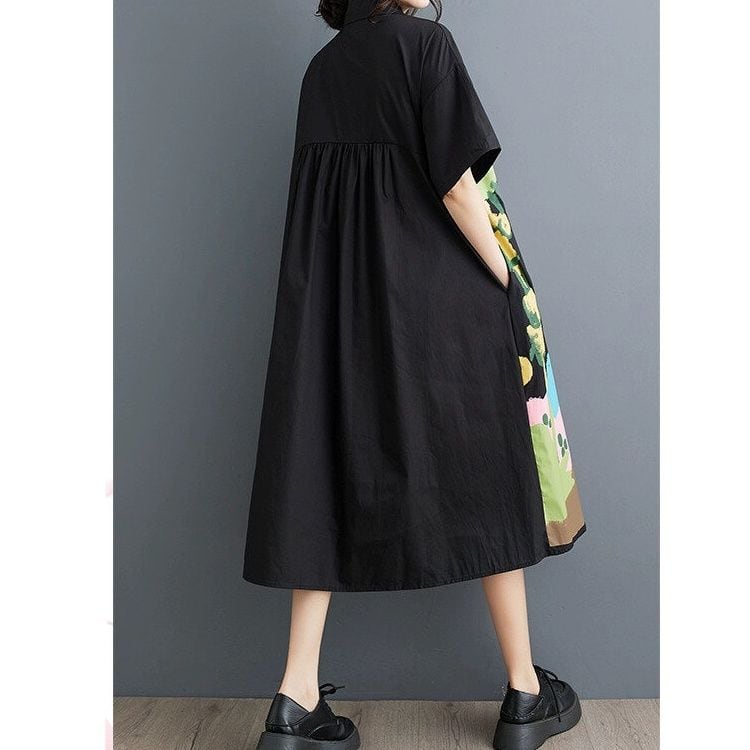 PRINT HALF SLEEVES A-LINE MIDI SHIRT DRESS 2colors M-14109