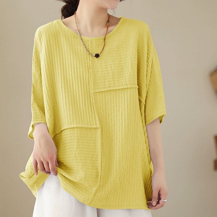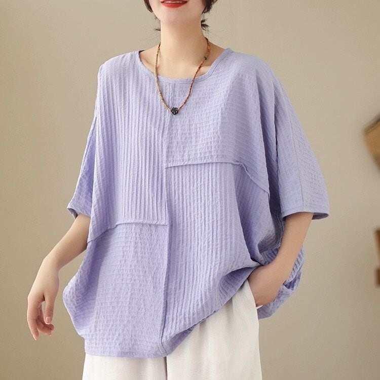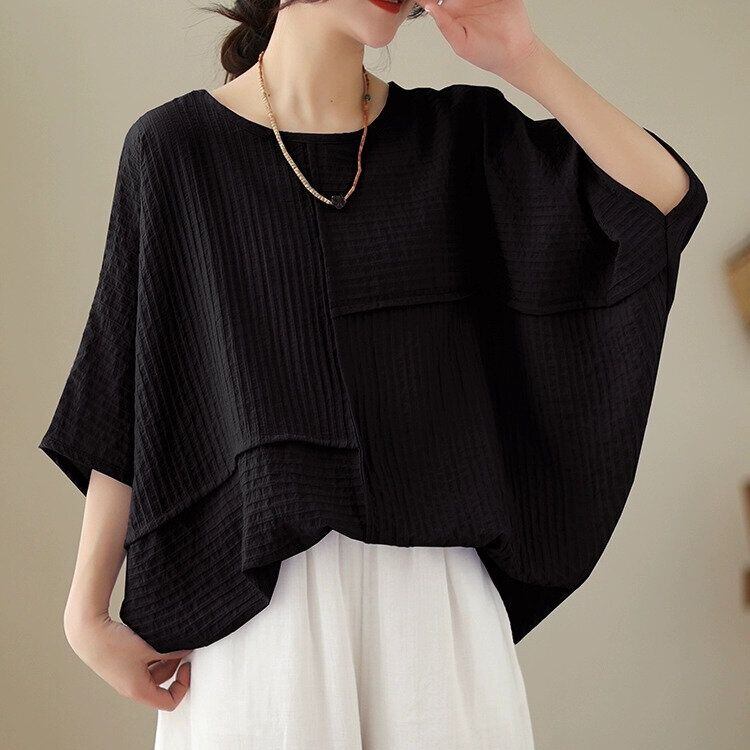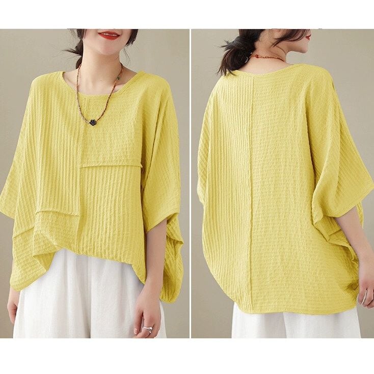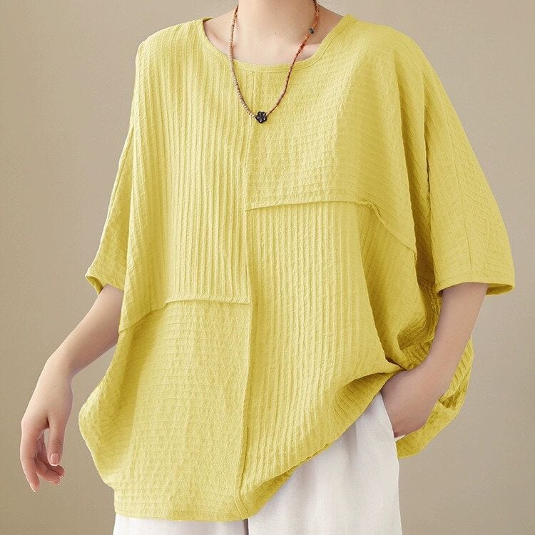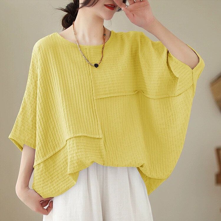 アシンメトリックなスティッチデザインがお洒落な、ボートネック・半袖・オーバーサイズのプルオーバートップです。袖口とサイドが繋がったワイド幅のシルエットが特徴的な、単色で合わせやすいアイテムです。全4色から選べます。 SIZE:※測り方によって2-3cmの差が生じる場合がございます。 【L】袖周り29cm 着丈68cm 【XL】袖周り30cm 着丈69cm 【2XL】袖周り32cm 着丈70cm 【3XL】袖周り34cm 着丈71cm 【4XL】袖周り36cm 着丈72cm 【5XL】袖周り38cm 着丈73cm COLOR:White、Yellow、Black、Light Purple 素材:ポリエステル100% モデル着用サイズ:L モデル情報:身長161cm 体重49kg お届けについて こちらの商品は海外店舗より直接発送となる為、 ご決済から到着までは、多くの場合【10日-2週間前後】でお届けしております。 ※在庫状況や輸送の混雑により、4週間前後かかる場合がございます。 注意事項 ・商品在庫切れにより注文キャンセルとさせていただく恐れもございますので、予めご了承くださいませ。 ・仕入れ工場を変えることがあるため、記載サイズと若干異なる場合がございます。 ・商品の色味は、お手持ちのスマートフォンの画面によって実物と若干異なる場合がございます。 ・イメージ違いやサイズ交換等、お客さまご都合による交換・返品はご遠慮ください。 送料について 全国一律580円。ただし10,000円以上のご注文で送料無料となります。 お支払い方法について ・クレジットカード決済(VISA/Mastercard/JCB/アメリカン・エクスプレス/ Diners Club) ・コンビニ決済/Pay-easy ※前払いのお支払い方法 ・あと払い(Pay ID) ・キャリア決済(docomo/au/ソフトバンク/Y!mobile) 管理番号:M-14114
