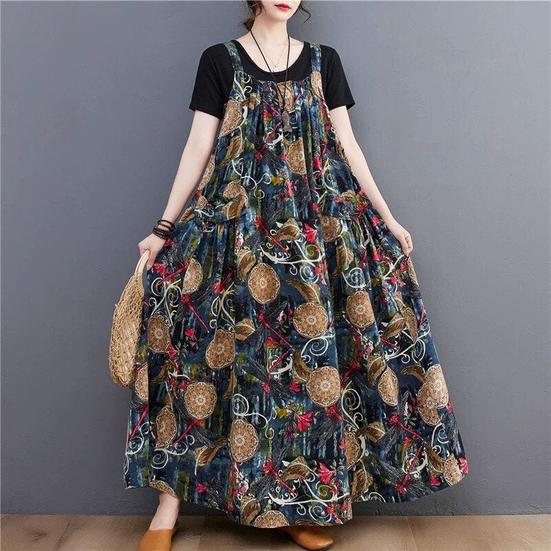 PRINT A-LINE MAXI JUMPER DRESS 1color M-14123