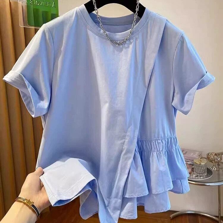 アシンメトリックなシルエットがお洒落な、ラウンドネックのデザインTシャツです。ウエストのシャーリング加工にダブルフリルの裾の左サイドがガーリーな、単色で合わせやすいカジュアルアイテムです。ブルーとホワイトの2色から選べます。 SIZE:※測り方によって2-3cmの差が生じる場合がございます。 【M】バスト100cm 肩幅39cm 袖丈18cm 着丈61cm 【L】バスト106cm 肩幅40cm 袖丈18.5cm 着丈62cm 【XL】バスト112cm 肩幅41cm 袖丈19cm 着丈63cm 【2XL】バスト118cm 肩幅42cm 袖丈19.5cm 着丈64cm COLOR:White、Blue 素材:ポリエステル、その他 お届けについて こちらの商品は海外店舗より直接発送となる為、 ご決済から到着までは、多くの場合【10日-2週間前後】でお届けしております。 ※在庫状況や輸送の混雑により、4週間前後かかる場合がございます。 注意事項 ・商品在庫切れにより注文キャンセルとさせていただく恐れもございますので、予めご了承くださいませ。 ・仕入れ工場を変えることがあるため、記載サイズと若干異なる場合がございます。 ・商品の色味は、お手持ちのスマートフォンの画面によって実物と若干異なる場合がございます。 ・イメージ違いやサイズ交換等、お客さまご都合による交換・返品はご遠慮ください。 送料について 全国一律580円。ただし10,000円以上のご注文で送料無料となります。 お支払い方法について ・クレジットカード決済(VISA/Mastercard/JCB/アメリカン・エクスプレス/ Diners Club) ・コンビニ決済/Pay-easy ※前払いのお支払い方法 ・あと払い(Pay ID) ・キャリア決済(docomo/au/ソフトバンク/Y!mobile) 管理番号:M-14144