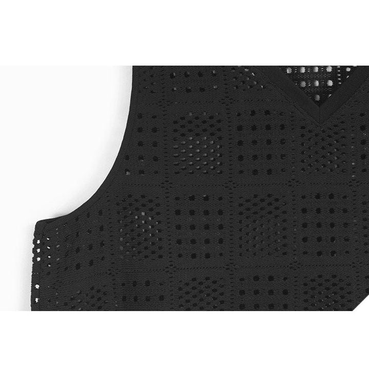 SOLID V-NECK MESH KNIT PULLOVER VEST 2colors M-14039