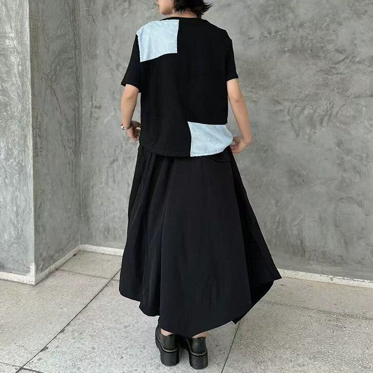 CONTRAST STITCH DESIGN ROUND NECK T-SHIRT 2colors M-14040