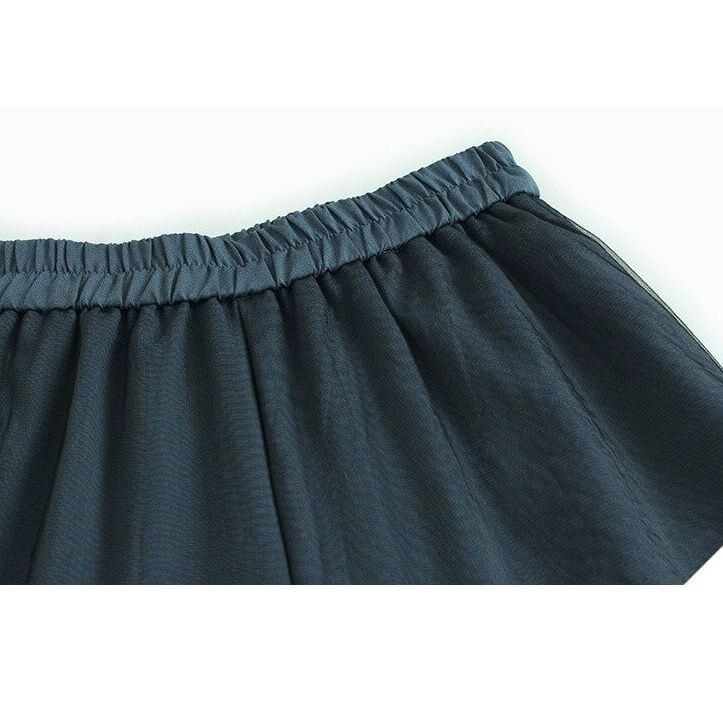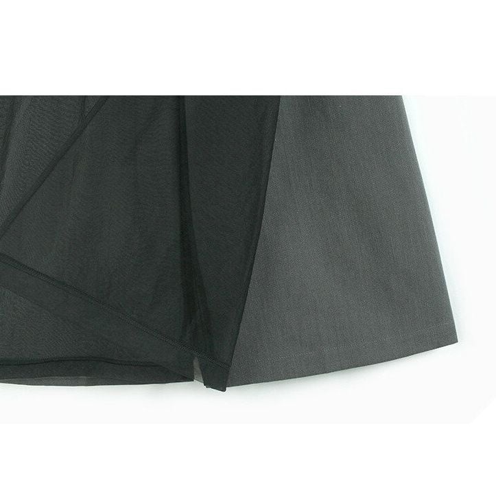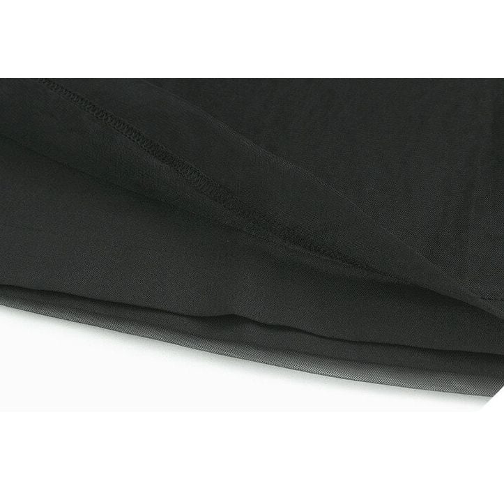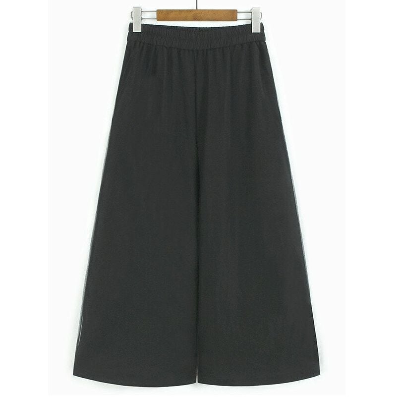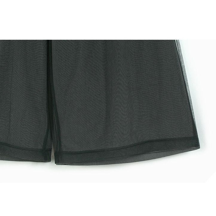 BLACK MESH LAYERED WIDE LEG CASUAL PANTS 3colors M-14046