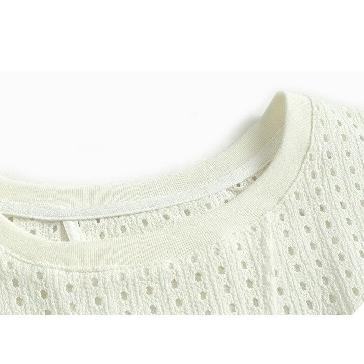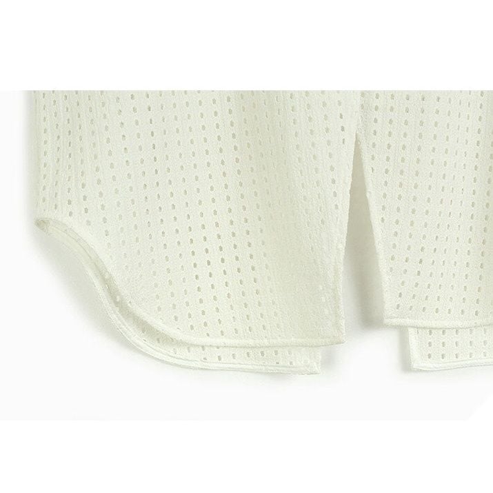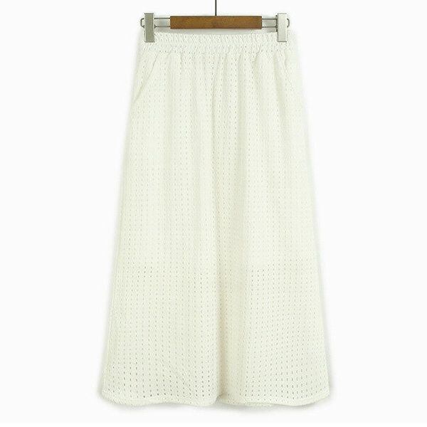 レースのようなニットメッシュ素材がお洒落な、デザインベストとAラインスカートのセットアップです。スカートはウエストがゴムなので、着脱が簡単で履き心地が良いです。単色のシンプルなデザインで、上下共に他アイテムとも合わせやすいです。ブラックとホワイトの2色から選べます。