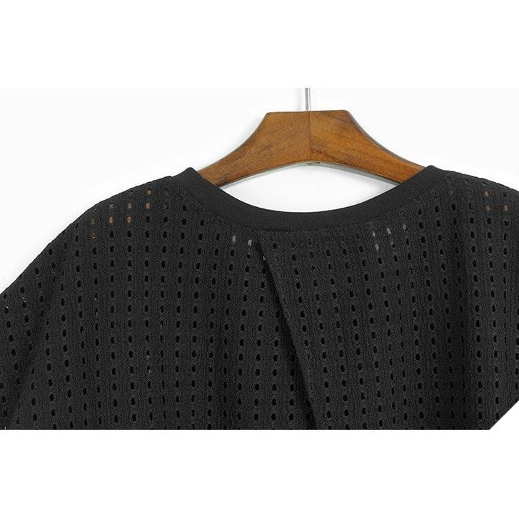 SOLID MESH DESIGN VEST & MIDI SKIRT SET 2pieces 2colors M-14048