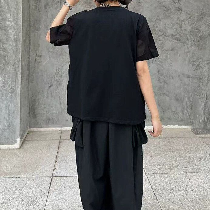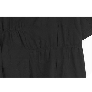 アシンメトリックに施されたシャーリング加工が作るシルエットがお洒落な、ラウンドネックのデザインTシャツです。単色のシンプルなデザインで、アクセサリーなどの小物アレンジの利くアイテムです。ブラックとホワイトの2色から選べます。