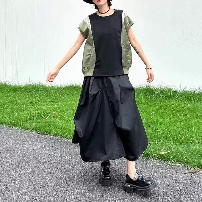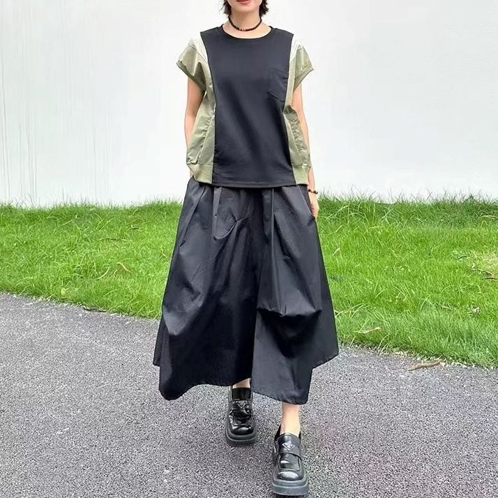 色も素材も異なるコントラストスティッチデザインがユニークな、ラウンドネック・半袖・プルオーバートップです。袖口と裾がリブ加工された、丸みのあるワイド幅のシルエットがお洒落なカジュアルアイテムです。全4色から選べます。 SIZE:※測り方によって2-3cmの差が生じる場合がございます。 【FREE SIZE】バスト114cm 裄丈20cm 裾周り106cm 着丈54cm COLOR:Black、White、Gray、Navy 素材:ポリエステル、その他 お届けについて こちらの商品は海外店舗より直接発送となる為、 ご決済から到着までは、多くの場合【10日-2週間前後】でお届けしております。 ※在庫状況や輸送の混雑により、4週間前後かかる場合がございます。 注意事項 ・商品在庫切れにより注文キャンセルとさせていただく恐れもございますので、予めご了承くださいませ。 ・仕入れ工場を変えることがあるため、記載サイズと若干異なる場合がございます。 ・商品の色味は、お手持ちのスマートフォンの画面によって実物と若干異なる場合がございます。 ・イメージ違いやサイズ交換等、お客さまご都合による交換・返品はご遠慮ください。 送料について 全国一律580円。ただし10,000円以上のご注文で送料無料となります。 お支払い方法について ・クレジットカード決済(VISA/Mastercard/JCB/アメリカン・エクスプレス/ Diners Club) ・コンビニ決済/Pay-easy ※前払いのお支払い方法 ・あと払い(Pay ID) ・キャリア決済(docomo/au/ソフトバンク/Y!mobile) 管理番号:M-14069