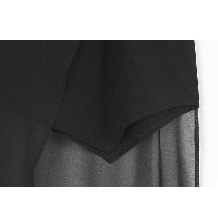 BLACK ZIP TRIMMED ORGANZA STITCHED LONG LINE T-SHIRT 1color M-14070