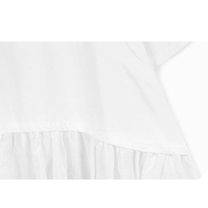 SOLID FRILLED HEM ROUND NECK DESIGN T-SHIRT 3colors M-14073