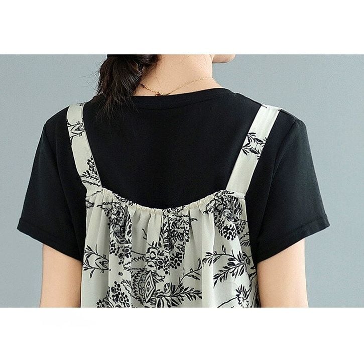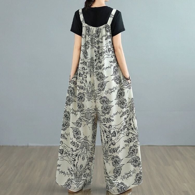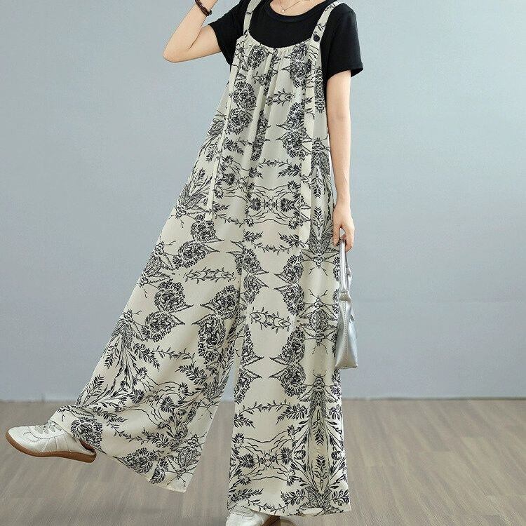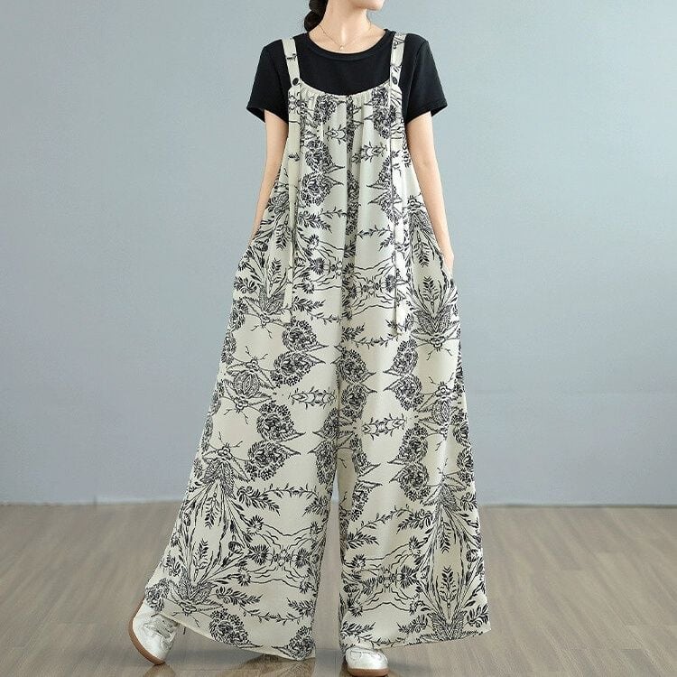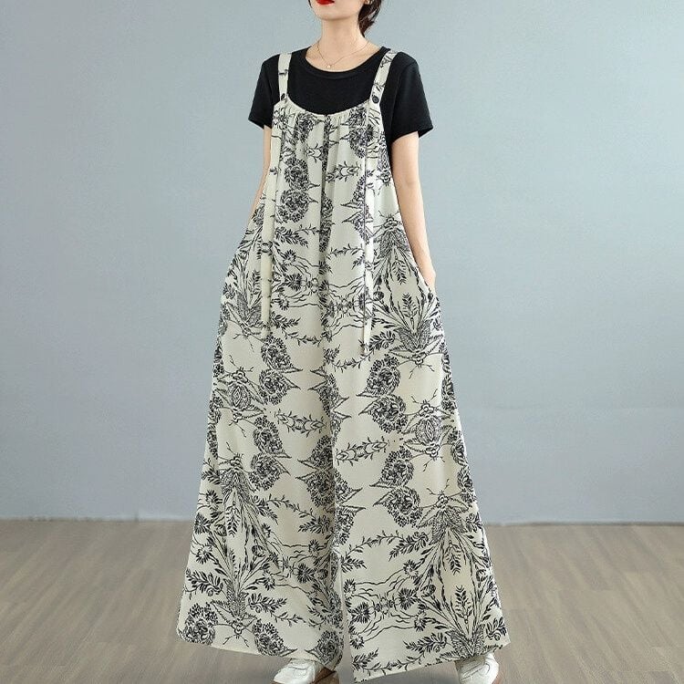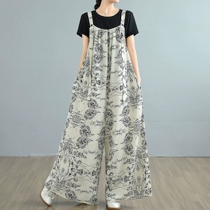 ART PRINT A-LINE WIDE LEG STRAP JUMPSUIT 1color M-14152