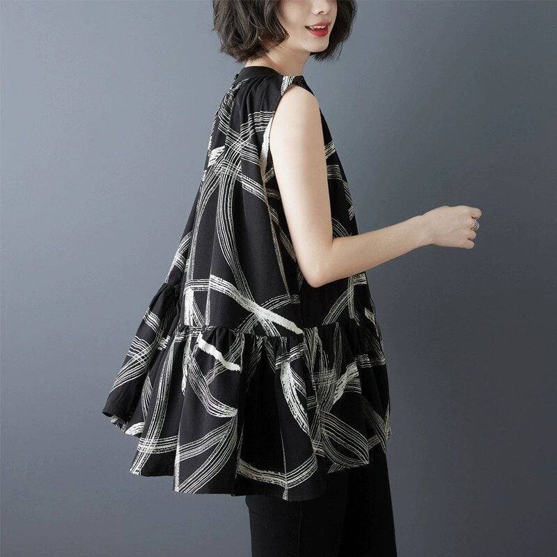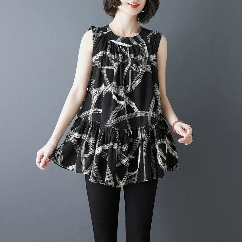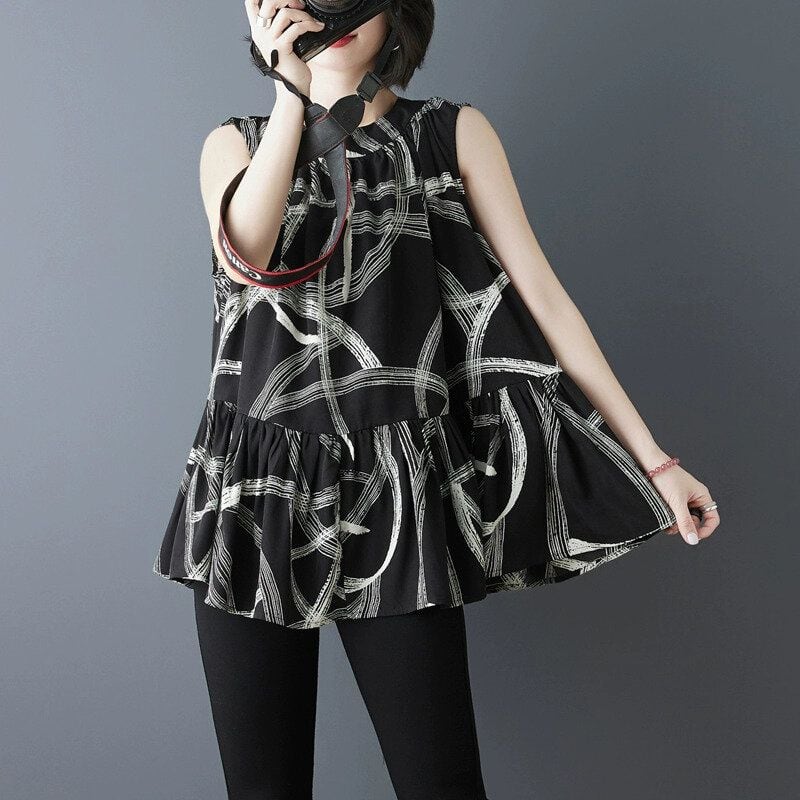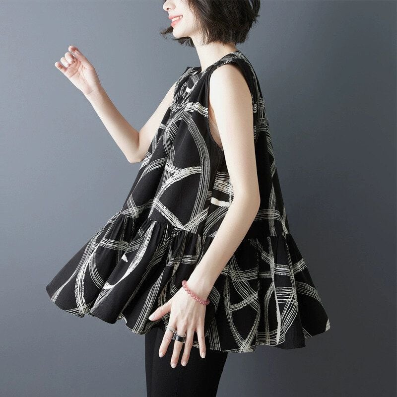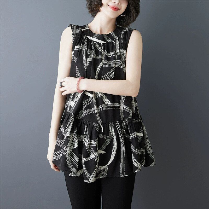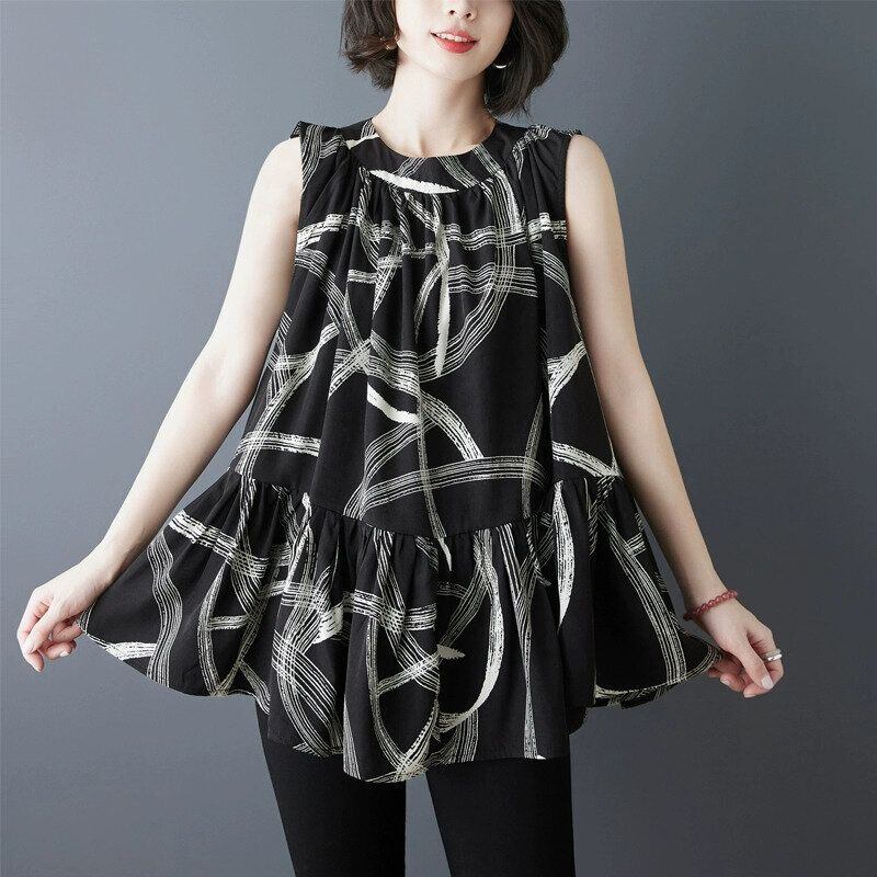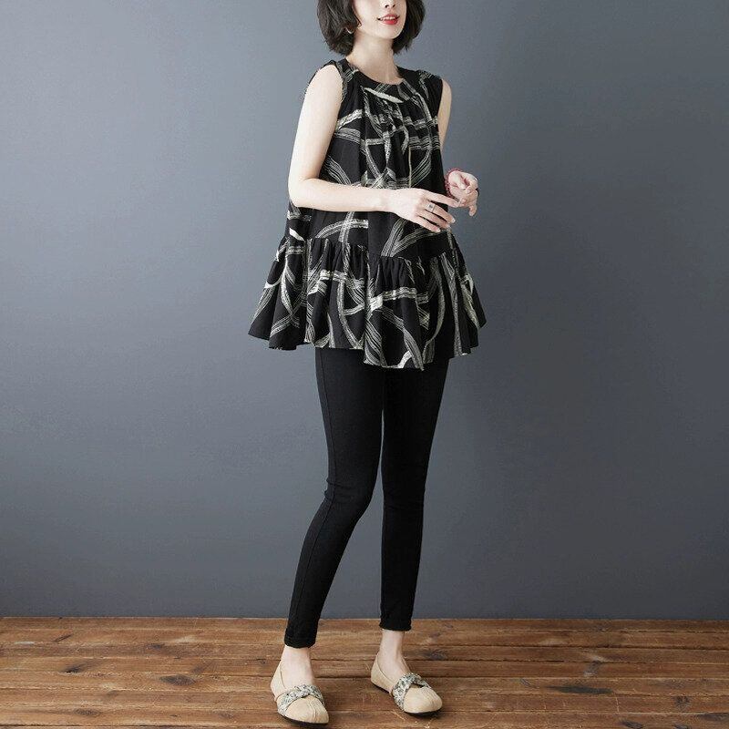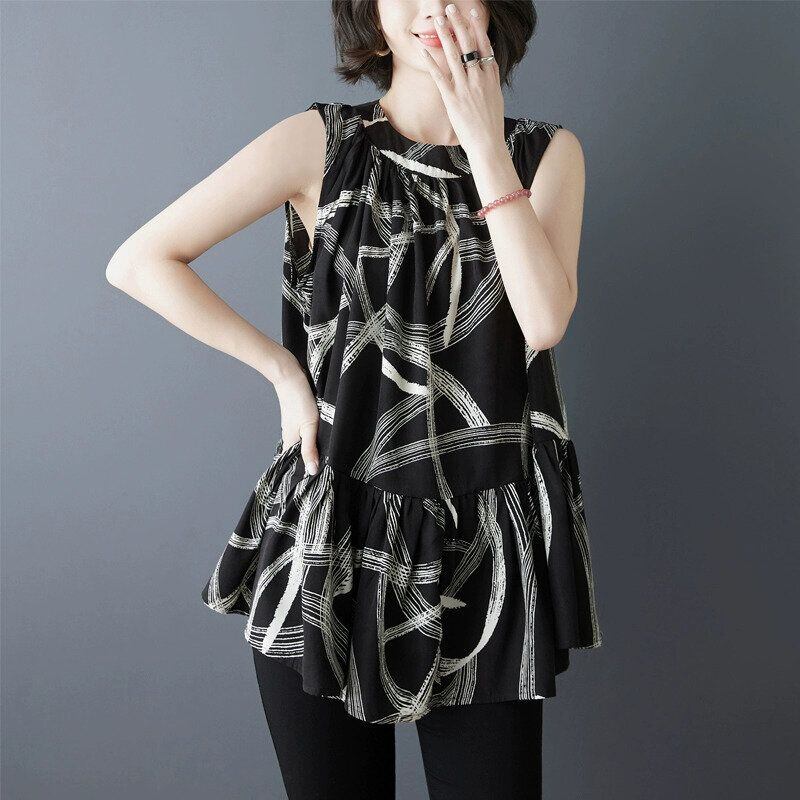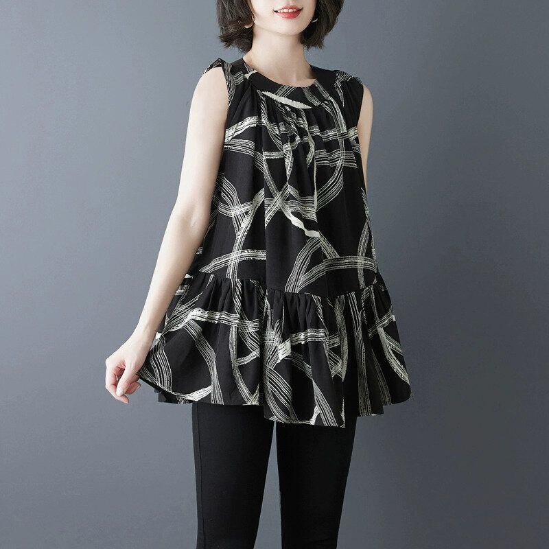 モノトーンの柄生地がクールな、ラウンドネック・ノースリーブ・プルオーバーシャツです。裾に向かって広がるAラインで、裾がフリル状になったふんわりとしたシルエットが魅力的なアイテムです。 SIZE:※測り方によって2-3cmの差が生じる場合がございます。 【M】バスト128cm 袖幅52cm 着丈69cm 【L】バスト132cm 袖幅53cm 着丈70cm 【XL】バスト136cm 袖幅54cm 着丈71cm 【2XL】バスト140cm 袖幅55cm 着丈72cm COLOR:Black 素材:ポリエステル、その他 モデル着用サイズ:L モデル情報:身長161cm 体重49kg STYLE CALENDAR:春〇 夏◎ 秋〇 冬△ お届けについて こちらの商品は海外店舗より直接発送となる為、 ご決済から到着までは、多くの場合【10日-2週間前後】でお届けしております。 ※在庫状況や輸送の混雑により、4週間前後かかる場合がございます。 注意事項 ・商品在庫切れにより注文キャンセルとさせていただく恐れもございますので、予めご了承くださいませ。 ・仕入れ工場を変えることがあるため、記載サイズと若干異なる場合がございます。 ・商品の色味は、お手持ちのスマートフォンの画面によって実物と若干異なる場合がございます。 ・イメージ違いやサイズ交換等、お客さまご都合による交換・返品はご遠慮ください。 送料について 全国一律580円。ただし10,000円以上のご注文で送料無料となります。 お支払い方法について ・クレジットカード決済(VISA/Mastercard/JCB/アメリカン・エクスプレス/ Diners Club) ・コンビニ決済/Pay-easy ※前払いのお支払い方法 ・Pay ID あと払い(コンビニ払い、口座振替)※あと払いのお支払い方法 ・キャリア決済(d払い/au PAY(auかんたん決済)/ソフトバンク・ワイモバイルまとめて支払い) 管理番号:M-14161