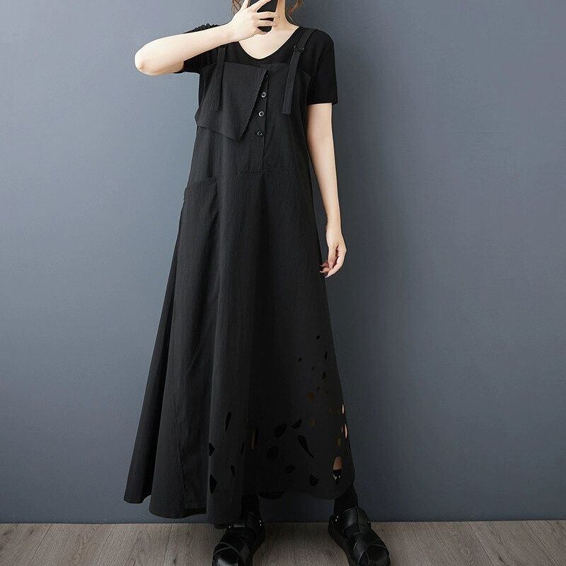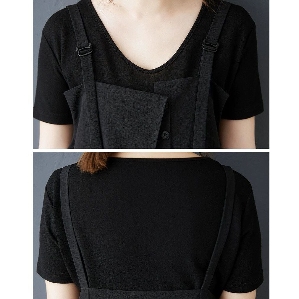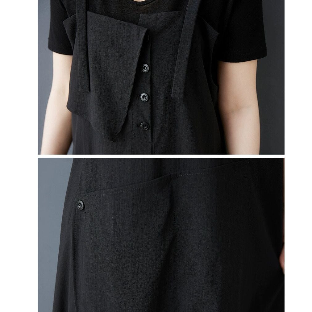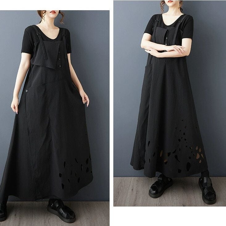 BLACK A-LINE LONG STRAP JUMPER DRESS 1color M-14179