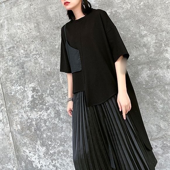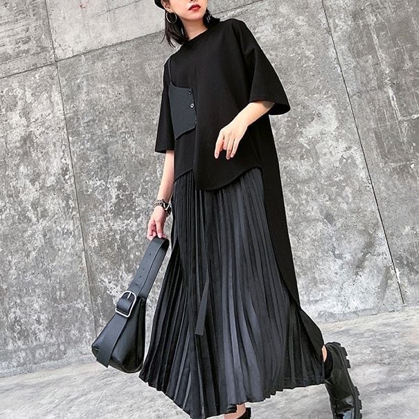 ブラックのアシンメトリックなデザインが目を惹く、ラウンドネック・5分袖・イレギュラーヘムのトップスとAライン・ミドル丈スカートのセットアップです。上下別売りです。トップスは左サイドが長く垂れたデザインで、スカートはプリーツとやや短めのプレーンのスティッチデザインになっています。 SIZE:※測り方によって2-3cmの差が生じる場合がございます。 <TOPS> 【M】バスト112cm 上腕周り56cm 袖周り34cm ウエスト110cm 着丈54/95cm 【L】バスト116cm 上腕周り58cm 袖周り36cm ウエスト114cm 着丈55/96cm 【XL】バスト120cm 上腕周り60cm 袖周り38cm ウエスト118cm 着丈56/97cm <BOTTOMS> 【M】ウエスト62-90cm ヒップ126cm 裾周り170cm 着丈66/75cm 【L】ウエスト66-94cm ヒップ130cm 裾周り174cm 着丈67/76cm 【XL】ウエスト70-98cm ヒップ134cm 裾周り178cm 着丈68/77cm COLOR:Black Tops、Black Bottoms 素材:ポリエステル、その他 モデル情報:身長166cm 体重52kg バスト80cm ウエスト66cm ヒップ86cm STYLE CALENDAR:春〇 夏◎ 秋〇 冬△ お届けについて こちらの商品は海外店舗より直接発送となる為、 ご決済から到着までは、多くの場合【10日-2週間前後】でお届けしております。 ※在庫状況や輸送の混雑により、4週間前後かかる場合がございます。 注意事項 ・商品在庫切れにより注文キャンセルとさせていただく恐れもございますので、予めご了承くださいませ。 ・仕入れ工場を変えることがあるため、記載サイズと若干異なる場合がございます。 ・商品の色味は、お手持ちのスマートフォンの画面によって実物と若干異なる場合がございます。 ・イメージ違いやサイズ交換等、お客さまご都合による交換・返品はご遠慮ください。 送料について 全国一律580円。ただし10,000円以上のご注文で送料無料となります。 お支払い方法について ・クレジットカード決済(VISA/Mastercard/JCB/アメリカン・エクスプレス/ Diners Club) ・コンビニ決済/Pay-easy ※前払いのお支払い方法 ・Pay ID あと払い(コンビニ払い、口座振替) ※あと払いのお支払い方法 ・キャリア決済(d払い/au PAY(auかんたん決済)/ソフトバンク・ワイモバイルまとめて支払い) 管理番号:M-14237