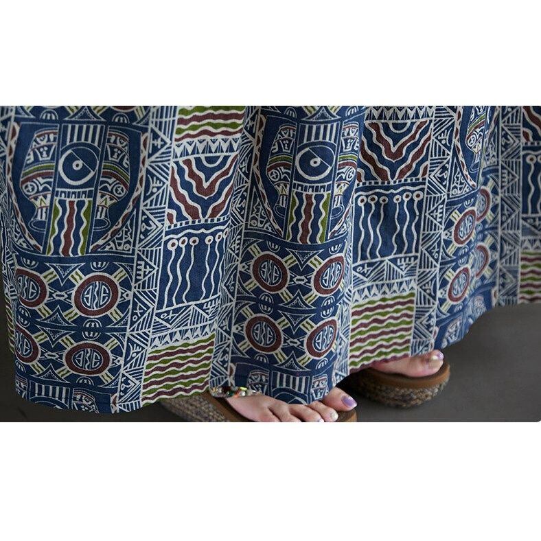 PRINT BOAT NECK LONG SLEEVES A-LINE MAXI DRESS 1color M-14254