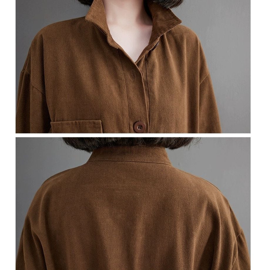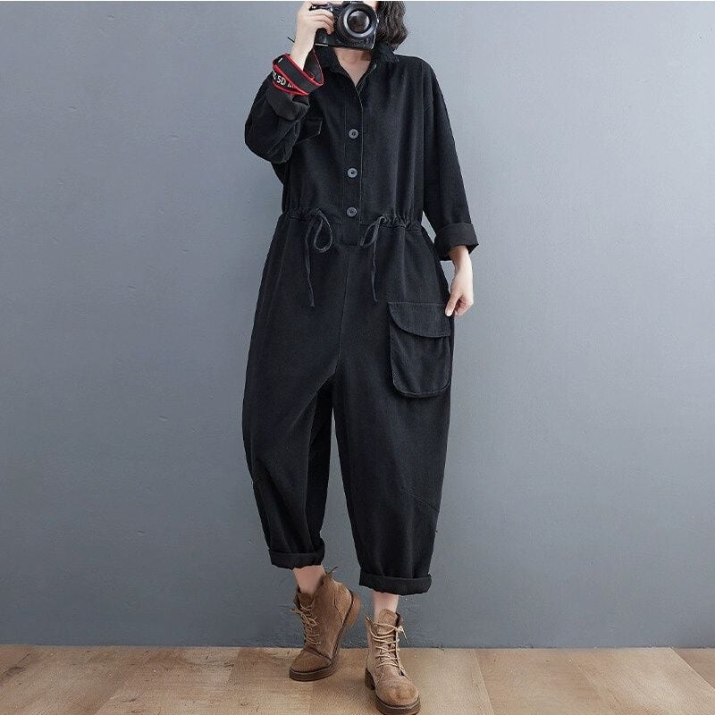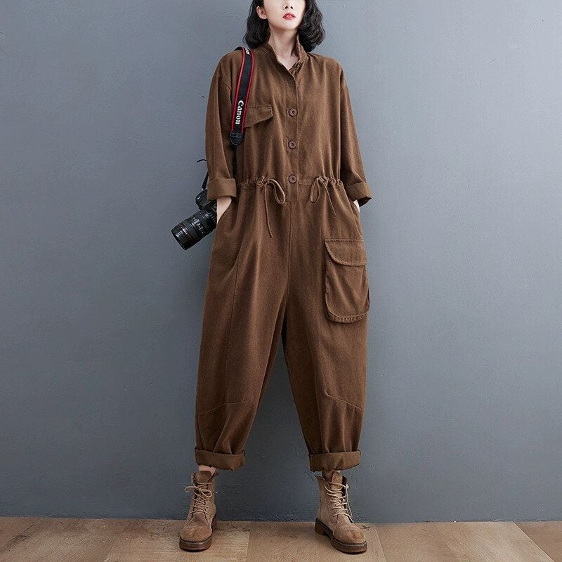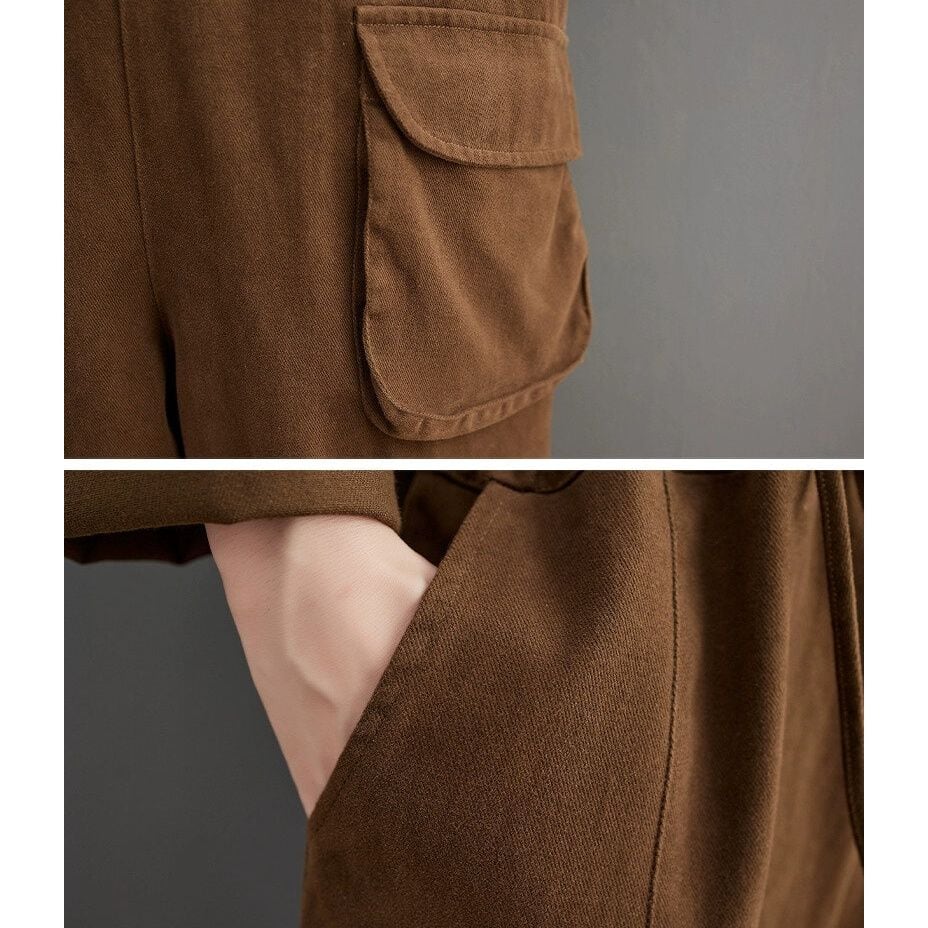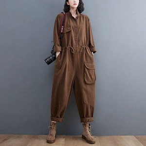 温かみのある単色素材でできた、ポロ襟・長袖・ワイドレッグのジャンプスーツです。ウエストはドローストリングで、シルエットを調節できます。立体的なデザインポケットがアクセントになった、リラックスした印象のカジュアルアイテムです。色は3色から選べます。 SIZE:※測り方によって2-3cmの差が生じる場合がございます。 【L】バスト116cm 肩幅51cm 袖丈50cm ヒップ117cm 着丈131cm 【XL】バスト120cm 肩幅52cm 袖丈51cm ヒップ121cm 着丈132cm 【2XL】バスト124cm 肩幅53cm 袖丈52cm ヒップ125cm 着丈133cm COLOR:Green、Black、Brown 素材:ポリエステル60%、綿40% モデル着用サイズ:L モデル情報:身長161cm 体重49kg STYLE CALENDAR:春〇 夏〇 秋◎ 冬〇 お届けについて こちらの商品は海外店舗より直接発送となる為、 ご決済から到着までは、多くの場合【10日-2週間前後】でお届けしております。 ※在庫状況や輸送の混雑により、4週間前後かかる場合がございます。 注意事項 ・商品在庫切れにより注文キャンセルとさせていただく恐れもございますので、予めご了承くださいませ。 ・仕入れ工場を変えることがあるため、記載サイズと若干異なる場合がございます。 ・商品の色味は、お手持ちのスマートフォンの画面によって実物と若干異なる場合がございます。 ・イメージ違いやサイズ交換等、お客さまご都合による交換・返品はご遠慮ください。 送料について 全国一律580円。ただし10,000円以上のご注文で送料無料となります。 お支払い方法について ・クレジットカード決済(VISA/Mastercard/JCB/アメリカン・エクスプレス/ Diners Club) ・コンビニ決済/Pay-easy ※前払いのお支払い方法 ・Pay ID あと払い(コンビニ払い、口座振替) ※あと払いのお支払い方法 ・キャリア決済(d払い/au PAY(auかんたん決済)/ソフトバンク・ワイモバイルまとめて支払い) 管理番号:M-14279