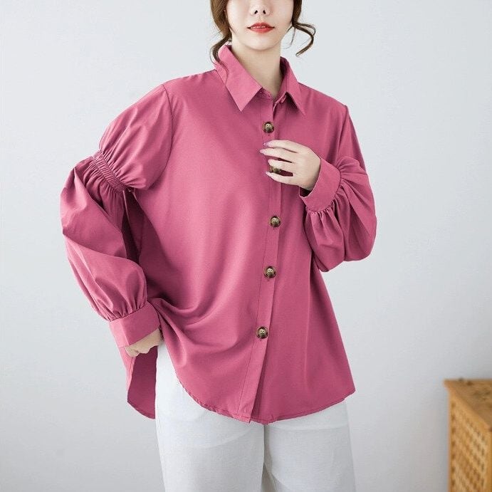 大きなボタンやデザインスリーブが特徴的な、ポロ襟・長袖・ラウンドカットのカラーシャツです。単色で何にでも合わせやすい、シルエットが魅力的なアイテムです。色は5色から選べます。 SIZE:※測り方によって2-3cmの差が生じる場合がございます。 【FREE SIZE】バスト122cm 肩幅41cm 袖丈59cm 着丈61-71cm COLOR:White、Black、RoseRed、Khaki、Purple 素材:ポリエステル、その他 モデル情報:身長161cm 体重49kg STYLE CALENDAR:春〇 夏〇 秋◎ 冬〇 お届けについて こちらの商品は海外店舗より直接発送となる為、 ご決済から到着までは、多くの場合【10日-2週間前後】でお届けしております。 ※在庫状況や輸送の混雑により、4週間前後かかる場合がございます。 注意事項 ・商品在庫切れにより注文キャンセルとさせていただく恐れもございますので、予めご了承くださいませ。 ・仕入れ工場を変えることがあるため、記載サイズと若干異なる場合がございます。 ・商品の色味は、お手持ちのスマートフォンの画面によって実物と若干異なる場合がございます。 ・イメージ違いやサイズ交換等、お客さまご都合による交換・返品はご遠慮ください。 送料について 全国一律580円。ただし10,000円以上のご注文で送料無料となります。 お支払い方法について ・クレジットカード決済(VISA/Mastercard/JCB/アメリカン・エクスプレス/ Diners Club) ・コンビニ決済/Pay-easy ※前払いのお支払い方法 ・Pay ID あと払い(コンビニ払い、口座振替) ※あと払いのお支払い方法 ・キャリア決済(d払い/au PAY(auかんたん決済)/ソフトバンク・ワイモバイルまとめて支払い) 管理番号:M-14288