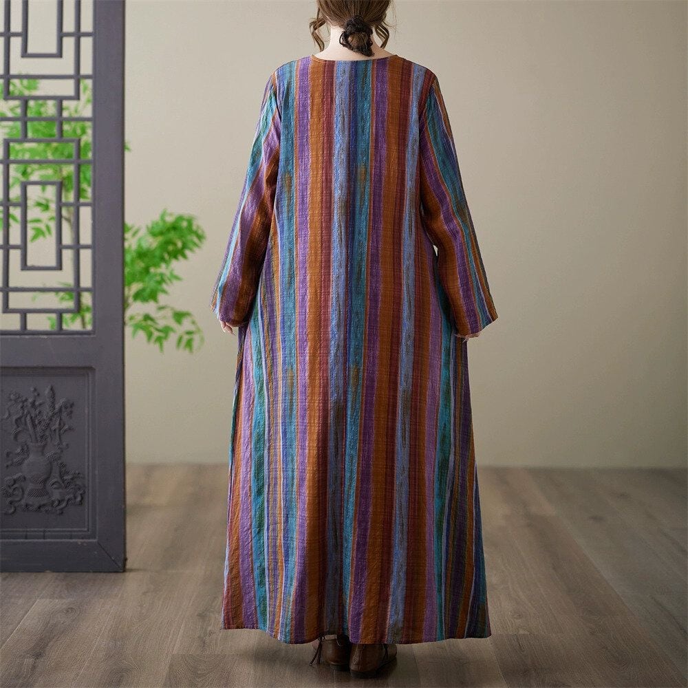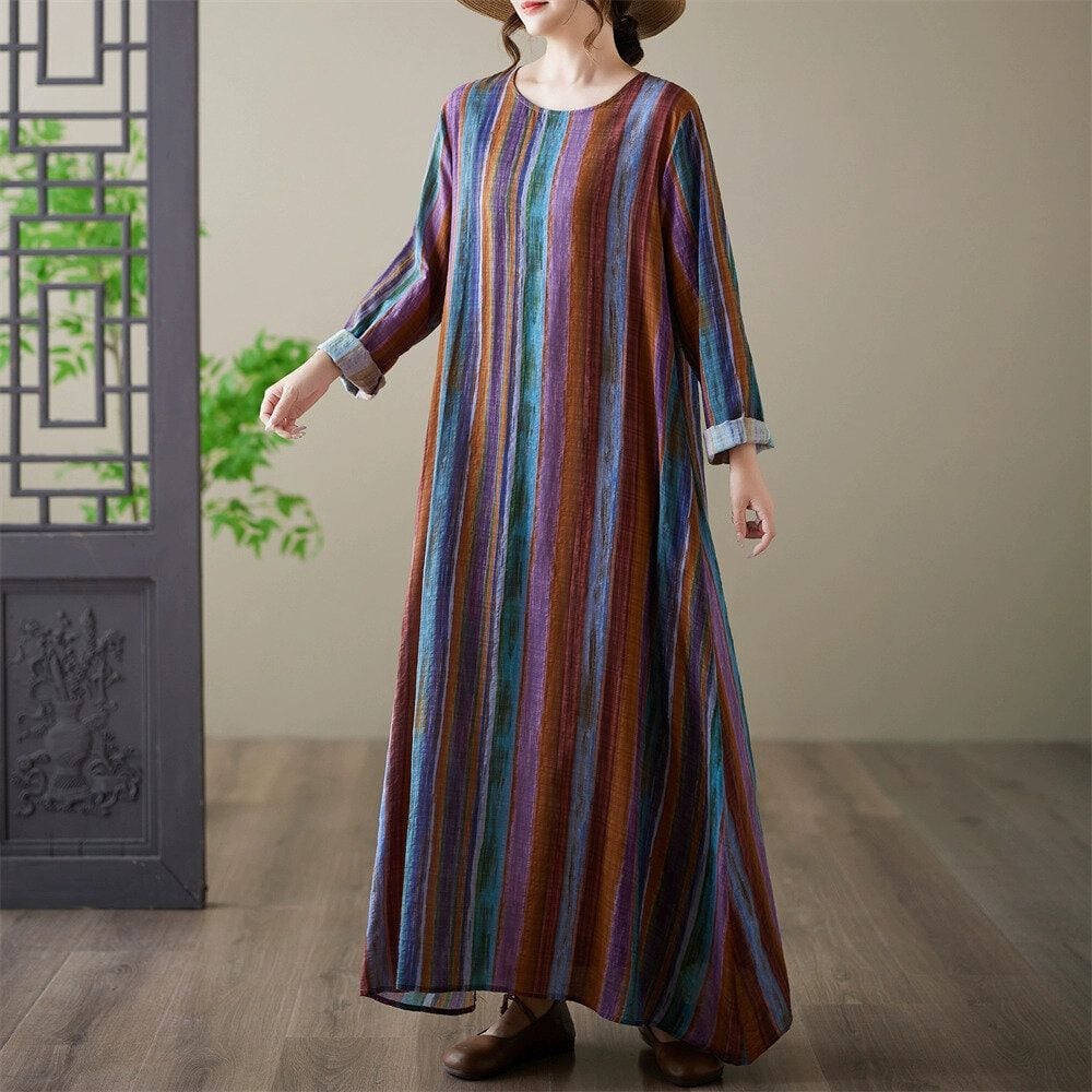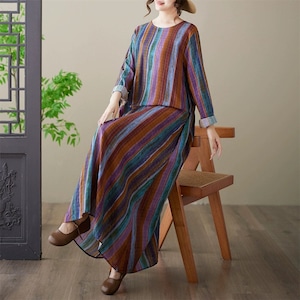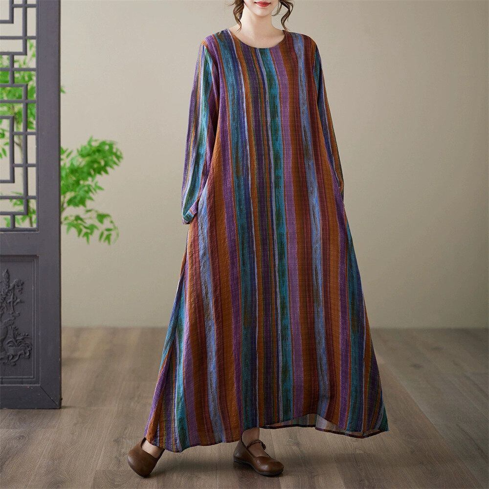 カラフルなストライプ柄が存在感を放つリラックスシルエットのマキシドレス。カジュアルながら個性を際立たせるデザイン。 SIZE:※測り方によって2-3cmの差が生じる場合がございます。 【L】バスト112cm 肩幅41cm 袖丈57cm 着丈127cm 【XL】バスト116cm 肩幅42cm 袖丈58cm 着丈128cm 【2XL】バスト120cm 肩幅43cm 袖丈59cm 着丈129cm 【3XL】バスト124cm 肩幅44cm 袖丈60cm 着丈130cm COLOR:Design 素材:ポリエステル、その他 モデル着用サイズ:L モデル情報:身長161cm 体重49kg STYLE CALENDAR:春〇 夏〇 秋◎ 冬〇 お届けについて こちらの商品は海外店舗より直接発送となる為、 ご決済から到着までは、多くの場合【10日-2週間前後】でお届けしております。 ※在庫状況や輸送の混雑により、4週間前後かかる場合がございます。 注意事項 ・商品在庫切れにより注文キャンセルとさせていただく恐れもございますので、予めご了承くださいませ。 ・仕入れ工場を変えることがあるため、記載サイズと若干異なる場合がございます。 ・商品の色味は、お手持ちのスマートフォンの画面によって実物と若干異なる場合がございます。 ・イメージ違いやサイズ交換等、お客さまご都合による交換・返品はご遠慮ください。 送料について 全国一律580円。ただし10,000円以上のご注文で送料無料となります。 お支払い方法について ・クレジットカード決済(VISA/Mastercard/JCB/アメリカン・エクスプレス/ Diners Club) ・コンビニ決済/Pay-easy ※前払いのお支払い方法 ・Pay ID あと払い(コンビニ払い、口座振替) ※あと払いのお支払い方法 ・キャリア決済(d払い/au PAY(auかんたん決済)/ソフトバンク・ワイモバイルまとめて支払い) 管理番号:M-14289