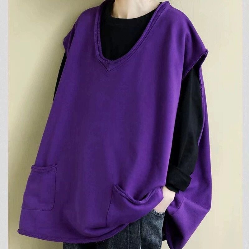切りっぱなしで丸まったエッジがお洒落な、オーバーサイズのカジュアルベストです。ゆったりとしたワイド幅のシルエットがリラックスした印象の、単色で使いやすいアイテムです。パープルとブラウンの2色から選べます。