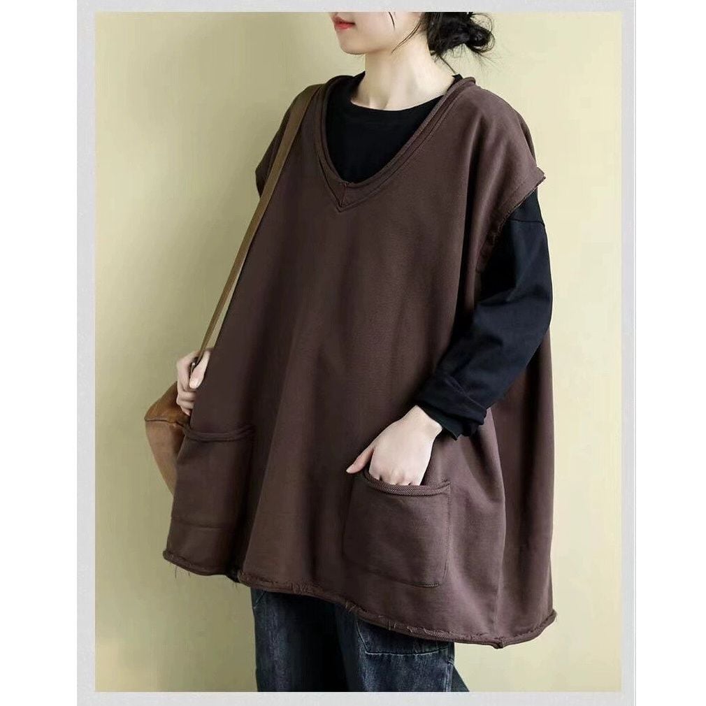 SOLID OVERSIZED CASUAL VEST 2colors M-14310