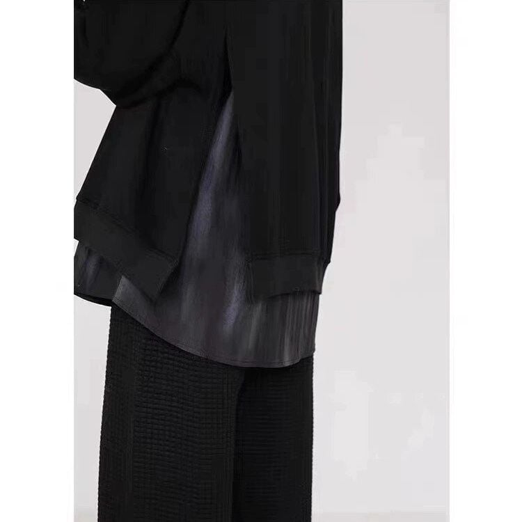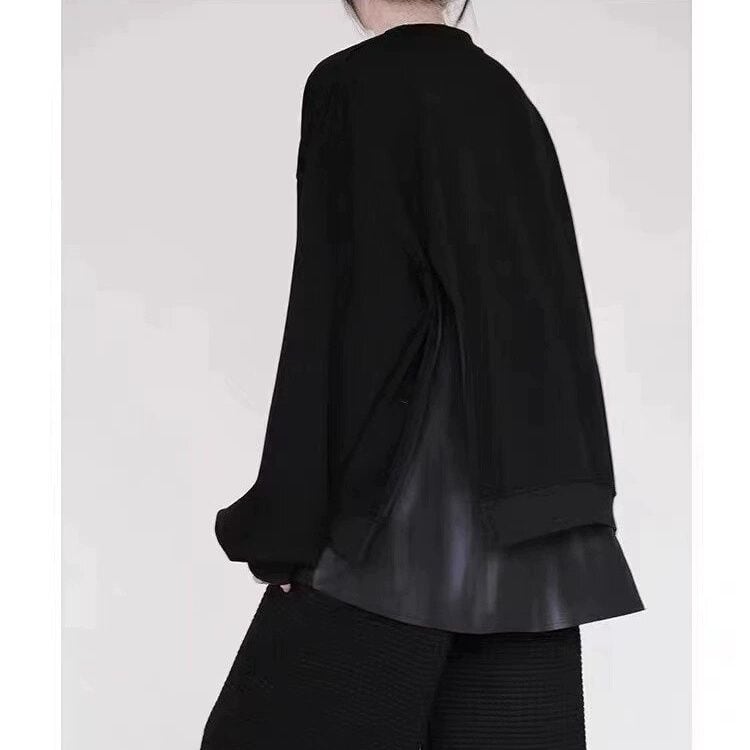 BLACK FAKE-2-PIECE DESIGN PULLOVER TOP 1color M-14320