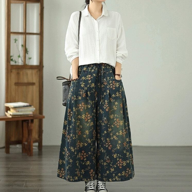 淡い色味のレトロなボタニカルプリントがキュートな、ワイドレッグ・クロップド・デニムパンツです。ウエストはゴム+ドローストリングで、履き心地が良いです。ロングスカートのようなAラインのシルエットが魅力的な、カジュアルアイテムです。色は2色から選べます。 SIZE:※測り方によって2-3cmの差が生じる場合がございます。 【M】ウエスト64-86cm ヒップ120cm 着丈94cm 【L】ウエスト66-88cm ヒップ124cm 着丈95cm 【XL】ウエスト68-90cm ヒップ128cm 着丈96cm 【2XL】ウエスト70-92cm ヒップ132cm 着丈97cm ※ウエストはゴム仕様のため伸縮性がございます。 COLOR:Blue、Retro 素材:ポリエステル、その他 モデル着用サイズ:L モデル情報:身長161cm 体重49kg STYLE CALENDAR:春〇 夏〇 秋◎ 冬〇 お届けについて こちらの商品は海外店舗より直接発送となる為、 ご決済から到着までは、多くの場合【10日-2週間前後】でお届けしております。 ※在庫状況や輸送の混雑により、4週間前後かかる場合がございます。 注意事項 ・商品在庫切れにより注文キャンセルとさせていただく恐れもございますので、予めご了承くださいませ。 ・仕入れ工場を変えることがあるため、記載サイズと若干異なる場合がございます。 ・商品の色味は、お手持ちのスマートフォンの画面によって実物と若干異なる場合がございます。 ・イメージ違いやサイズ交換等、お客さまご都合による交換・返品はご遠慮ください。 送料について 全国一律580円。ただし10,000円以上のご注文で送料無料となります。 お支払い方法について ・クレジットカード決済(VISA/Mastercard/JCB/アメリカン・エクスプレス/ Diners Club) ・コンビニ決済/Pay-easy ※前払いのお支払い方法 ・Pay ID あと払い(コンビニ払い、口座振替) ※あと払いのお支払い方法 ・キャリア決済(d払い/au PAY(auかんたん決済)/ソフトバンク・ワイモバイルまとめて支払い) 管理番号:M-14322