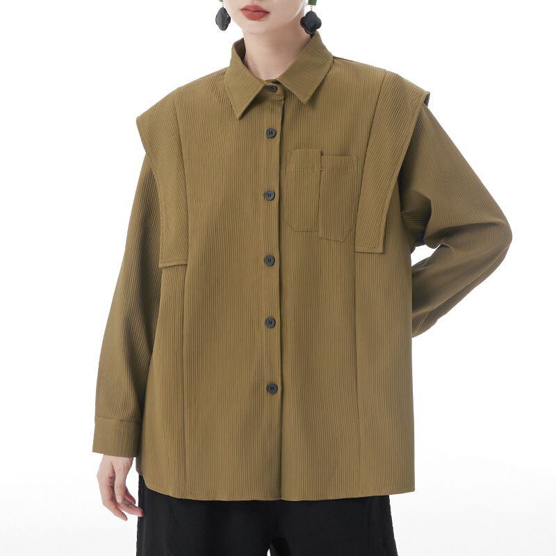 SOLID SHOULDER FLAP LONG SLEEVES CORDUROY SHIRT 3colors M-14354