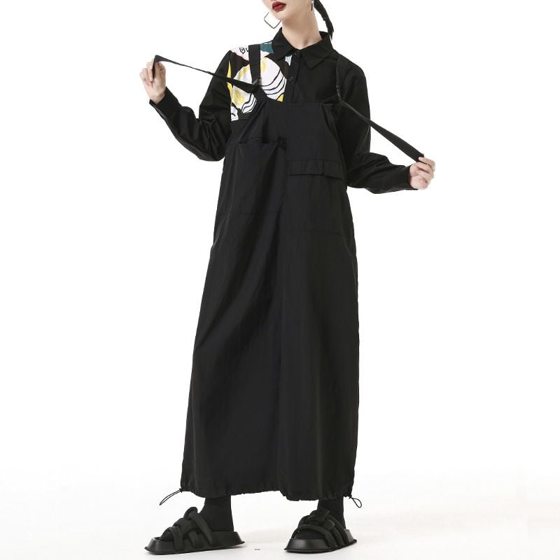 SOLID DRAWCORD HEM LONG STRAP JUMPER DRESS 2colors M-14355