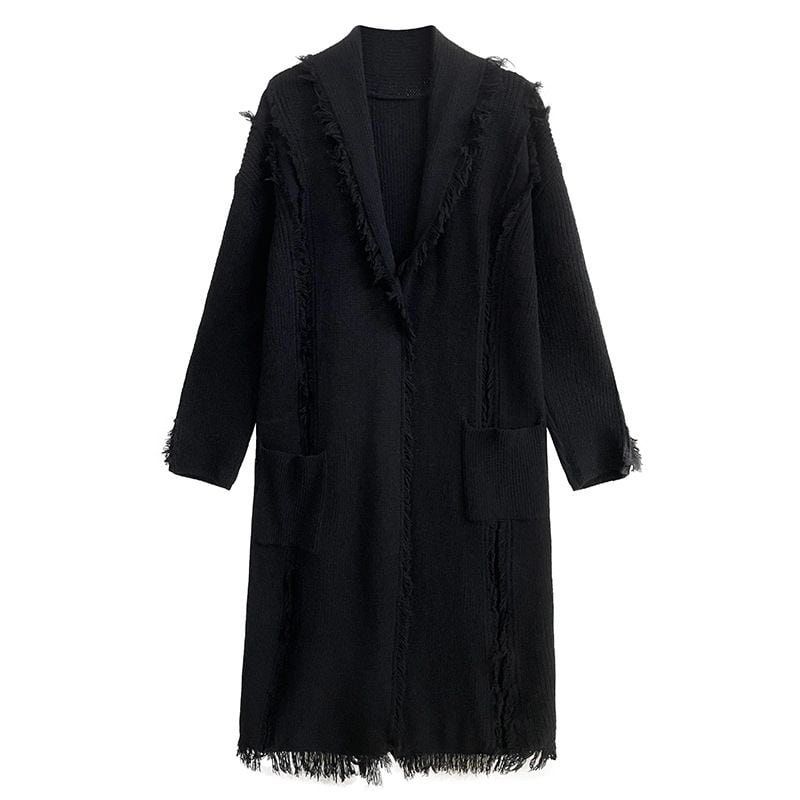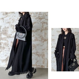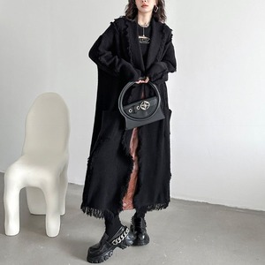 BLACK FRINGE TRIMMED LONGLINE KNIT CARDIGAN 1color M-14357