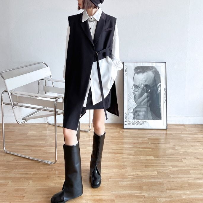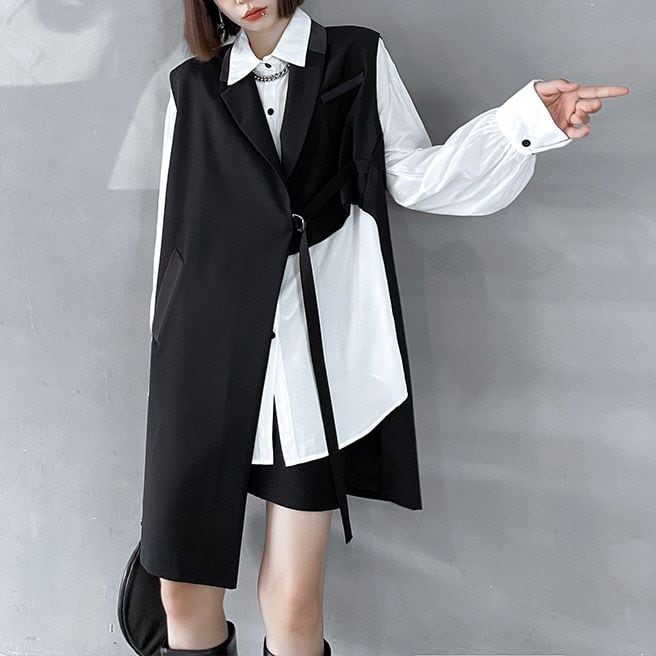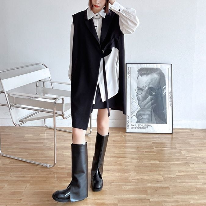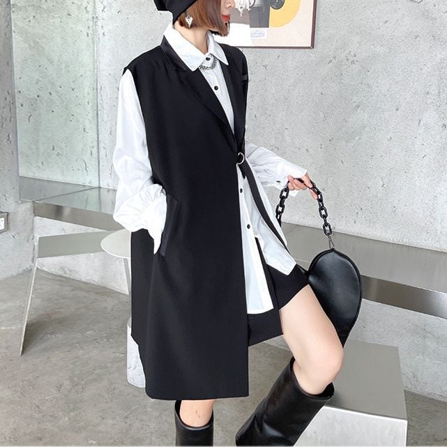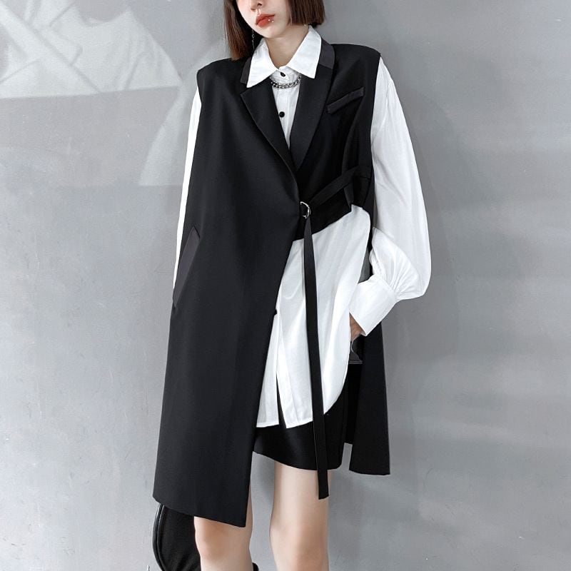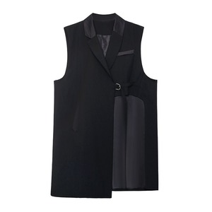 BLACK ASYMMETRIC DESIGN MIDI VEST JACKET 1color M-14360