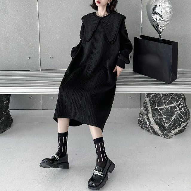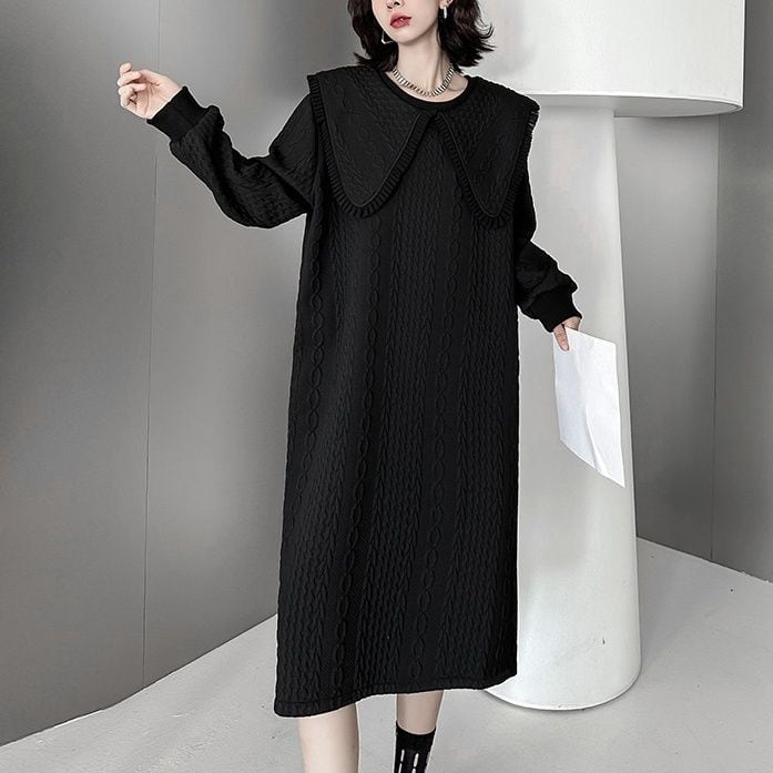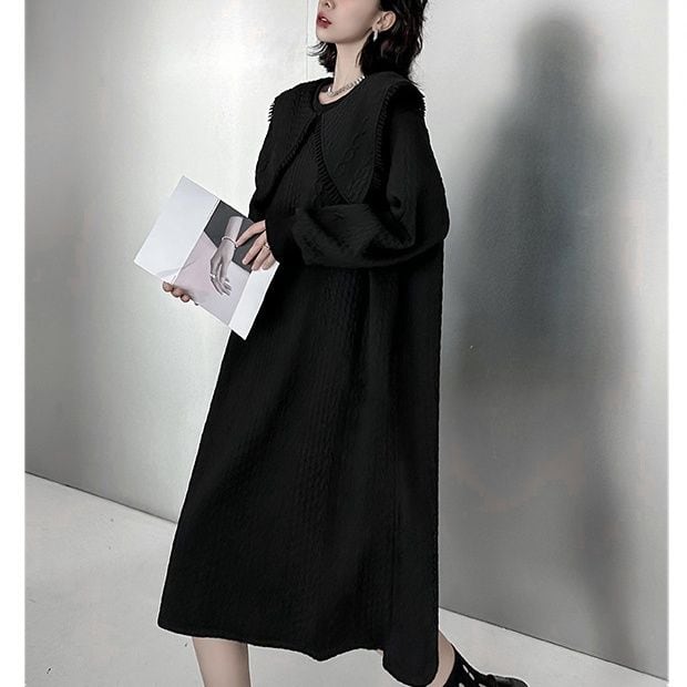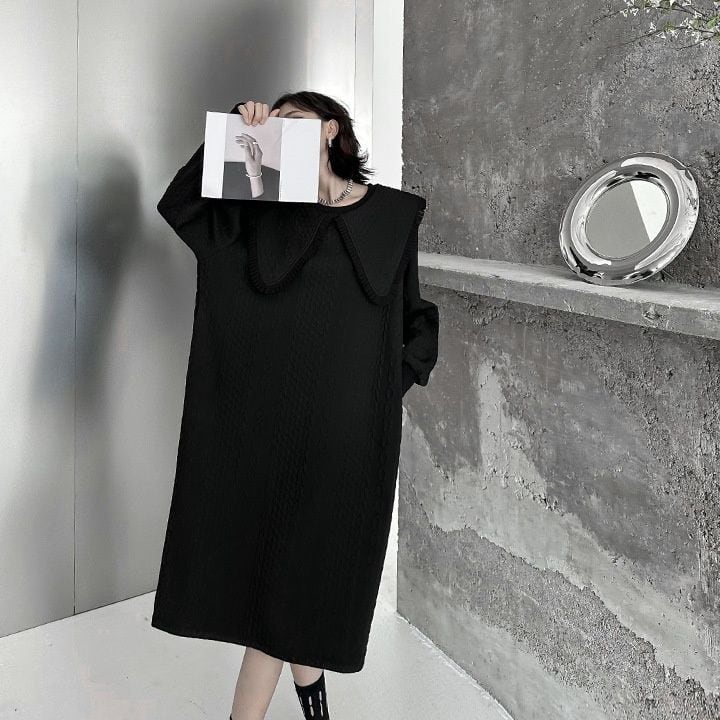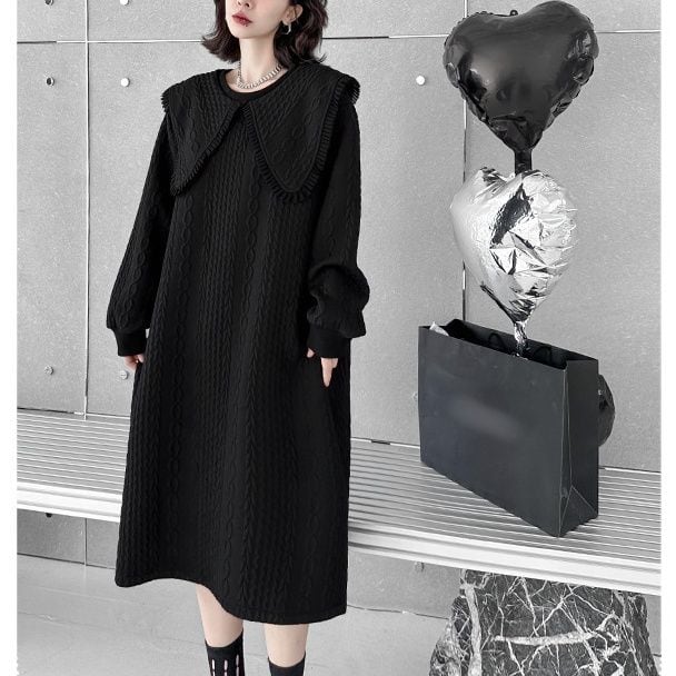 BLACK DOLL COLLAR MIDI PULLOVER DRESS 1color M-14362