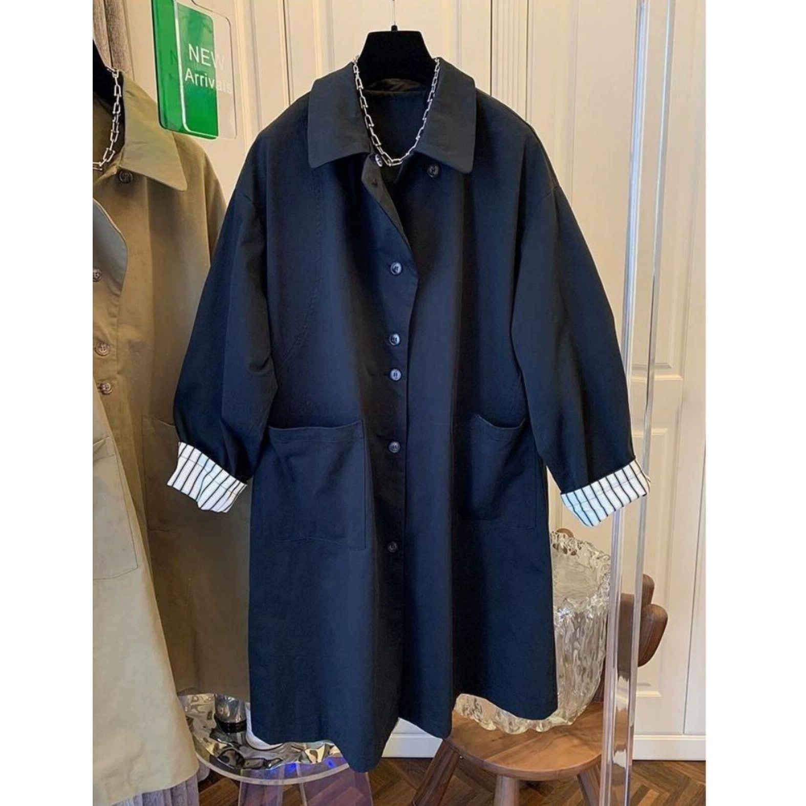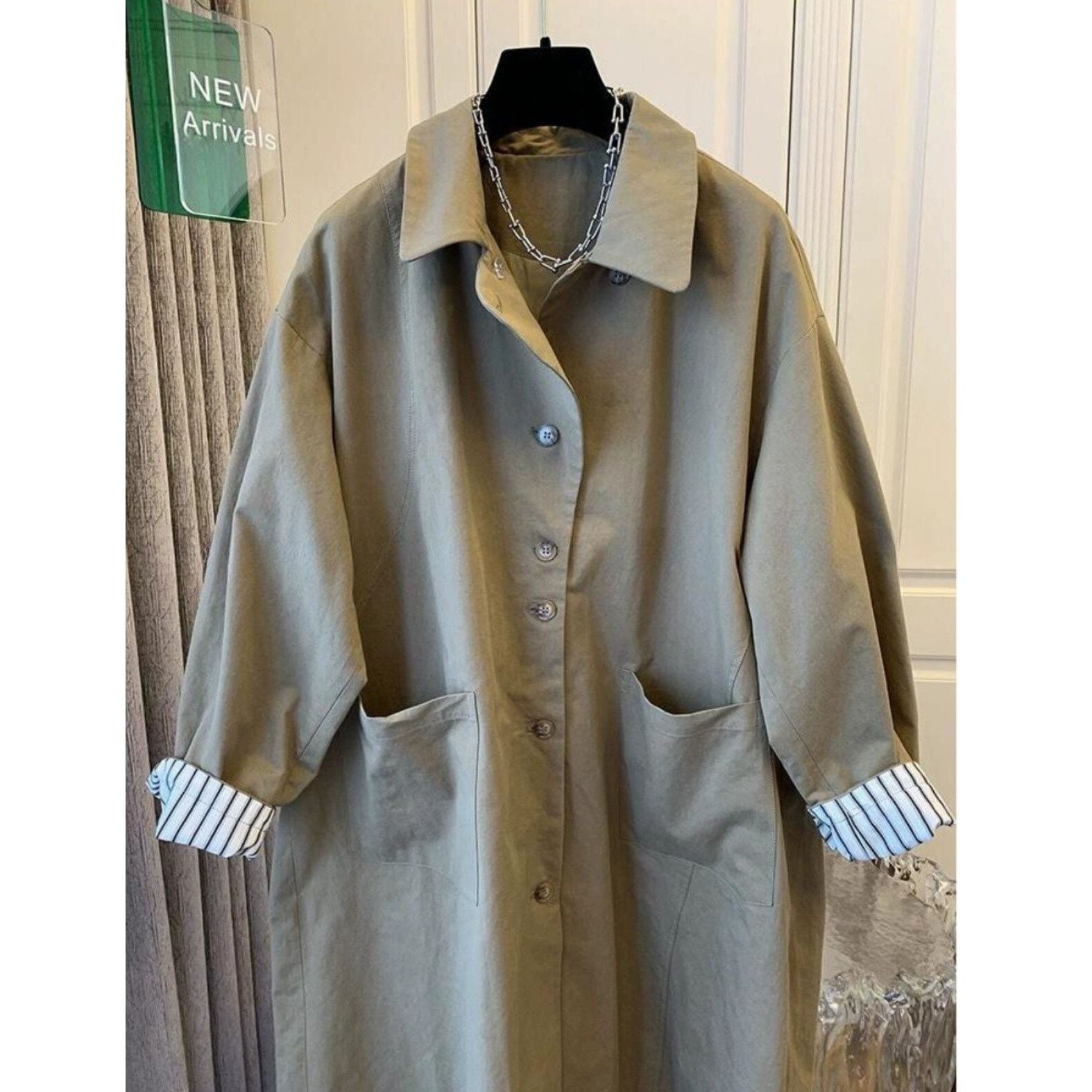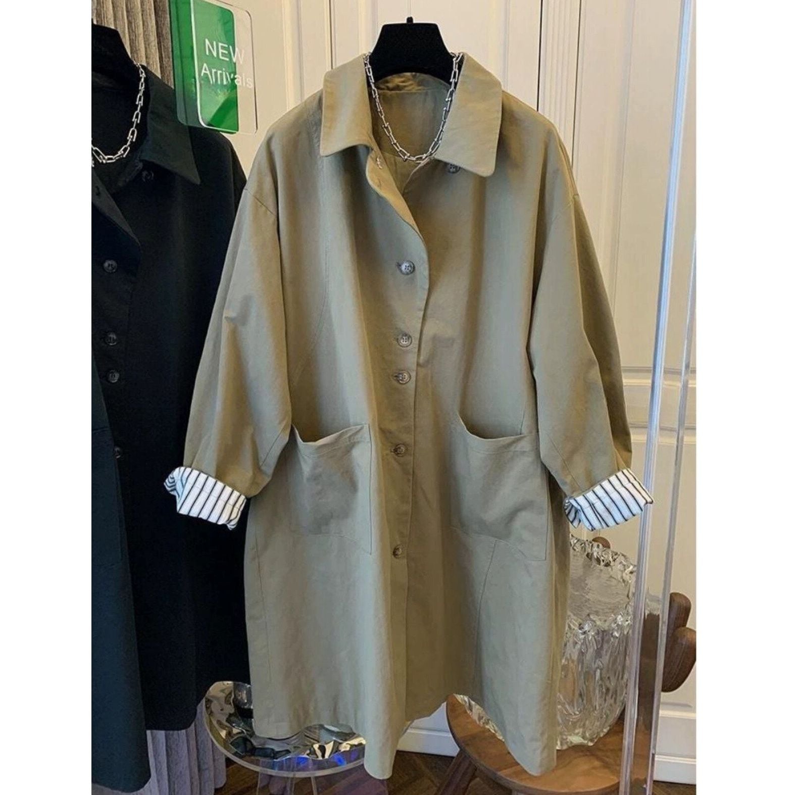 ゆったりとしたシルエットが余裕ある雰囲気を漂わせるトレンチコートです。纏うだけで洗練と落ち着きを兼ね備えたスタイルに導きます。 SIZE:※測り方によって2-3cmの差が生じる場合がございます。 【M】バスト105cm 着丈95cm 【L】バスト110cm 着丈96cm 【XL】バスト115cm 着丈97cm 【2XL】バスト120cm 着丈98cm COLOR:Black、Khaki 素材:ポリエステル、その他 STYLE CALENDAR:春〇 夏〇 秋◎ 冬〇 お届けについて こちらの商品は海外店舗より直接発送となる為、 ご決済から到着までは、多くの場合【10日-2週間前後】でお届けしております。 ※在庫状況や輸送の混雑により、4週間前後かかる場合がございます。 注意事項 ・商品在庫切れにより注文キャンセルとさせていただく恐れもございますので、予めご了承くださいませ。 ・仕入れ工場を変えることがあるため、記載サイズと若干異なる場合がございます。 ・商品の色味は、お手持ちのスマートフォンの画面によって実物と若干異なる場合がございます。 ・イメージ違いやサイズ交換等、お客さまご都合による交換・返品はご遠慮ください。 送料について 全国一律580円。ただし10,000円以上のご注文で送料無料となります。 お支払い方法について ・クレジットカード決済(VISA/Mastercard/JCB/アメリカン・エクスプレス/ Diners Club) ・コンビニ決済/Pay-easy ※前払いのお支払い方法 ・Pay ID あと払い(コンビニ払い、口座振替) ※あと払いのお支払い方法 ・キャリア決済(d払い/au PAY(auかんたん決済)/ソフトバンク・ワイモバイルまとめて支払い) 管理番号:M-14424