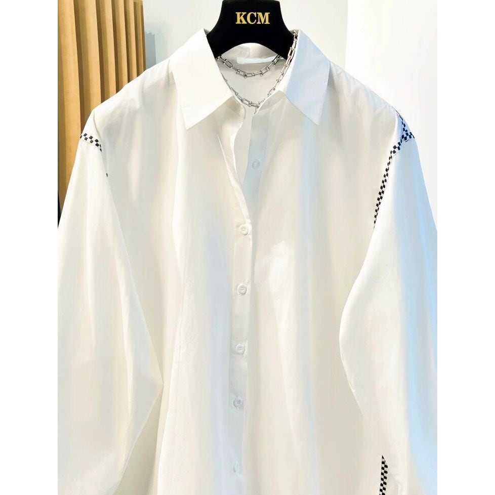 チェッカー柄のアクセントが映えるゆったりシルエットのシャツです。纏うだけで都会的で個性的なムードを放ち、デイリーにも特別な日にも映えます。 SIZE:※測り方によって2-3cmの差が生じる場合がございます。 【M】バスト105cm 着丈85cm 【L】バスト110cm 着丈86cm 【XL】バスト115cm 着丈87cm 【2XL】バスト120cm 着丈88cm COLOR:White、Black 素材:ポリエステル、その他 STYLE CALENDAR:春◎ 夏〇 秋◎ 冬〇 お届けについて こちらの商品は海外店舗より直接発送となる為、 ご決済から到着までは、多くの場合【10日-2週間前後】でお届けしております。 ※在庫状況や輸送の混雑により、4週間前後かかる場合がございます。 注意事項 ・商品在庫切れにより注文キャンセルとさせていただく恐れもございますので、予めご了承くださいませ。 ・仕入れ工場を変えることがあるため、記載サイズと若干異なる場合がございます。 ・商品の色味は、お手持ちのスマートフォンの画面によって実物と若干異なる場合がございます。 ・イメージ違いやサイズ交換等、お客さまご都合による交換・返品はご遠慮ください。 送料について 全国一律580円。ただし10,000円以上のご注文で送料無料となります。 お支払い方法について ・クレジットカード決済(VISA/Mastercard/JCB/アメリカン・エクスプレス/ Diners Club) ・コンビニ決済/Pay-easy ※前払いのお支払い方法 ・Pay ID あと払い(コンビニ払い、口座振替) ※あと払いのお支払い方法 ・キャリア決済(d払い/au PAY(auかんたん決済)/ソフトバンク・ワイモバイルまとめて支払い) 管理番号:M-14438