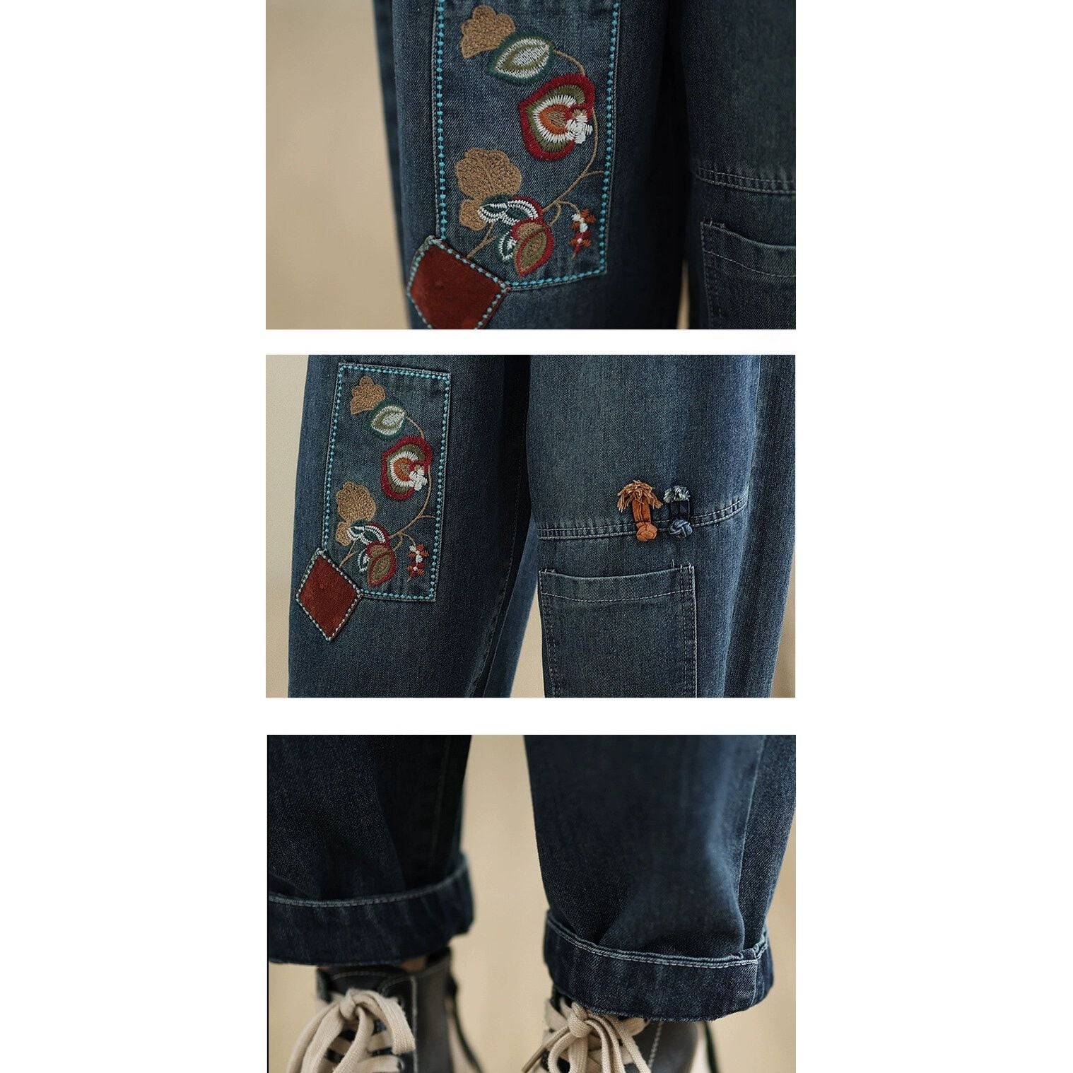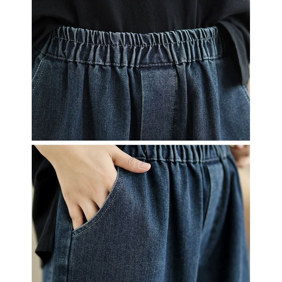 EMBROIDERED ELASTIC WAIST DENIM PANTS 1color M-14465