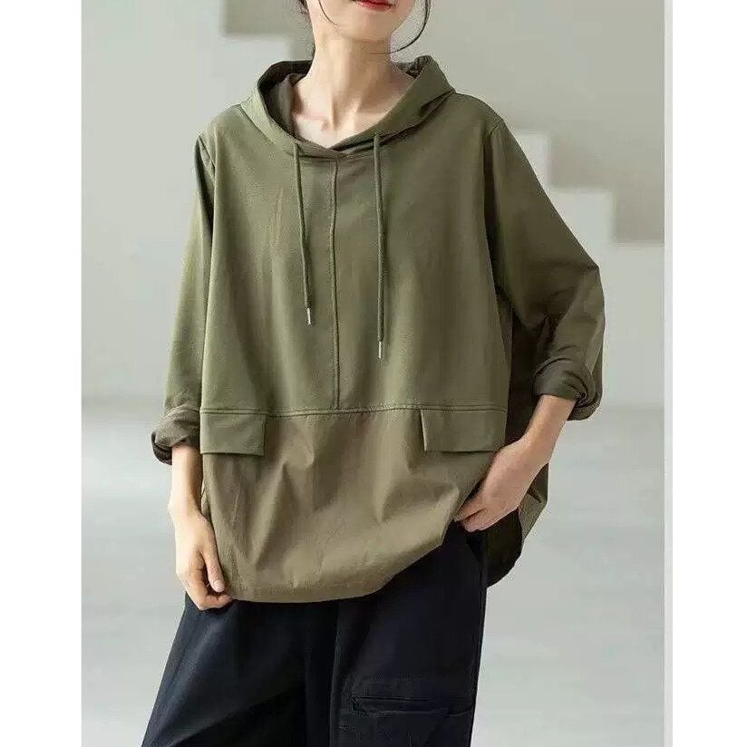同色・素材違いのスティッチデザインがクールな、フード付き・デザインプルオーバーです。ゆったりとしたシルエットとシンプルなデザインで合わせやすい、フロントとバックで印象の異なるお洒落なアイテムです。ブラックとアーミーグリーンの2色から選べます。