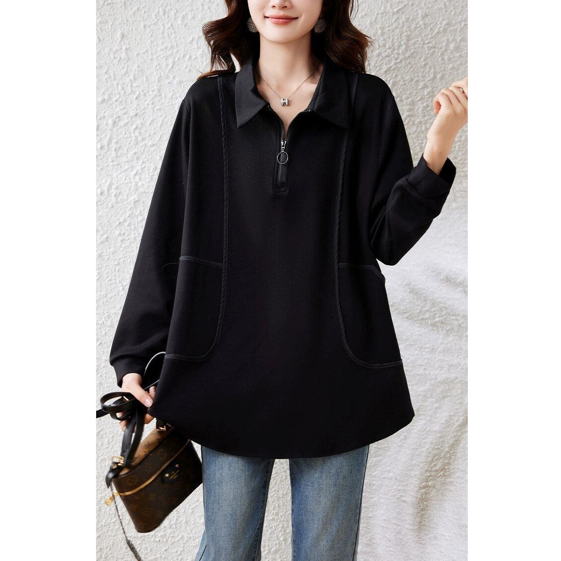 ブラックの滑らかで柔らかい素材でできた、襟付きハーフジップ・長袖・チュニック丈のプルオーバートップです。ゆったりとした、わずかに広がるAラインのシルエットのカジュアルアイテムです。 SIZE:※測り方によって2-3cmの差が生じる場合がございます。 【M】バスト104cm 肩幅42cm 袖丈53cm 着丈68cm 【L】バスト108cm 肩幅43cm 袖丈54cm 着丈69cm 【XL】バスト112cm 肩幅44cm 袖丈55cm 着丈70cm 【2XL】バスト116cm 肩幅45cm 袖丈56cm 着丈71cm 【3XL】バスト120cm 肩幅46cm 袖丈57cm 着丈72cm 【4XL】バスト124cm 肩幅47cm 袖丈58cm 着丈73cm COLOR:Black 素材:ポリエステル、その他 モデル情報:身長165cm 体重45kg STYLE CALENDAR:春◎ 夏〇 秋◎ 冬〇 お届けについて こちらの商品は海外店舗より直接発送となる為、 ご決済から到着までは、多くの場合【10日-2週間前後】でお届けしております。 ※在庫状況や輸送の混雑により、4週間前後かかる場合がございます。 注意事項 ・商品在庫切れにより注文キャンセルとさせていただく恐れもございますので、予めご了承くださいませ。 ・仕入れ工場を変えることがあるため、記載サイズと若干異なる場合がございます。 ・商品の色味は、お手持ちのスマートフォンの画面によって実物と若干異なる場合がございます。 ・イメージ違いやサイズ交換等、お客さまご都合による交換・返品はご遠慮ください。 送料について 全国一律580円。ただし10,000円以上のご注文で送料無料となります。 お支払い方法について ・クレジットカード決済(VISA/Mastercard/JCB/アメリカン・エクスプレス/ Diners Club) ・コンビニ決済/Pay-easy ※前払いのお支払い方法 ・Pay ID あと払い(コンビニ払い、口座振替) ※あと払いのお支払い方法 ・キャリア決済(d払い/au PAY(auかんたん決済)/ソフトバンク・ワイモバイルまとめて支払い) 管理番号:M-14473