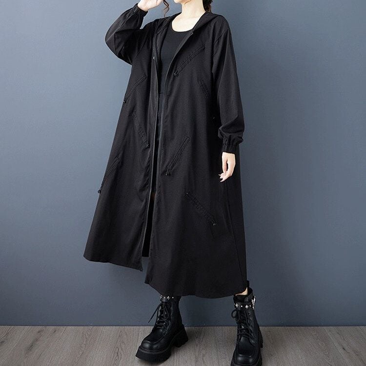 DRAWCORD TRIMMED HOODED A-LINE FULLZIP CASUAL COAT 2colors M-14480