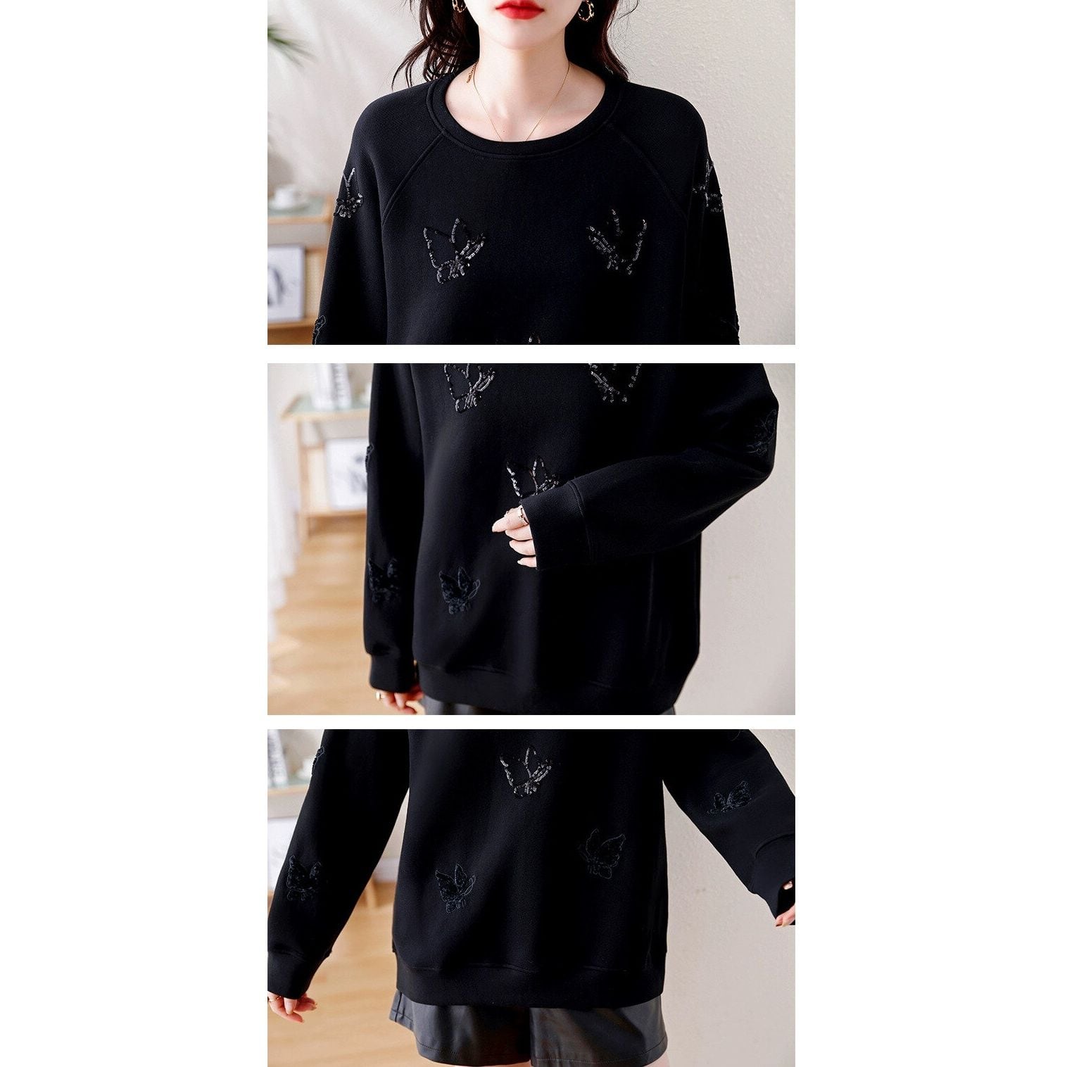スパンコールの蝶が散りばめられた、ラウンドネックのスウェットシャツです。ゆったりとしたシルエットとブラックの単色で、何にでも合わせやすいです。クールさとガーリーさをミックスした、カジュアルなアイテムです。 SIZE:※測り方によって2-3cmの差が生じる場合がございます。 【M】バスト110cm 裄丈62cm 着丈68cm 【L】バスト114cm 裄丈63m 着丈69cm 【XL】バスト118cm 裄丈64cm 着丈70cm 【2XL】バスト122cm 裄丈65cm 着丈71cm 【3XL】バスト126cm 裄丈66cm 着丈72cm 【4XL】バスト130cm 裄丈67cm 着丈73cm COLOR:Black 素材:ポリエステル、その他 モデル情報:身長165cm 体重45kg STYLE CALENDAR:春〇 夏〇 秋◎ 冬〇 お届けについて こちらの商品は海外店舗より直接発送となる為、 ご決済から到着までは、多くの場合【10日-2週間前後】でお届けしております。 ※在庫状況や輸送の混雑により、4週間前後かかる場合がございます。 注意事項 ・商品在庫切れにより注文キャンセルとさせていただく恐れもございますので、予めご了承くださいませ。 ・仕入れ工場を変えることがあるため、記載サイズと若干異なる場合がございます。 ・商品の色味は、お手持ちのスマートフォンの画面によって実物と若干異なる場合がございます。 ・イメージ違いやサイズ交換等、お客さまご都合による交換・返品はご遠慮ください。 送料について 全国一律580円。ただし10,000円以上のご注文で送料無料となります。 お支払い方法について ・クレジットカード決済(VISA/Mastercard/JCB/アメリカン・エクスプレス/ Diners Club) ・コンビニ決済/Pay-easy ※前払いのお支払い方法 ・Pay ID あと払い(コンビニ払い、口座振替) ※あと払いのお支払い方法 ・キャリア決済(d払い/au PAY(auかんたん決済)/ソフトバンク・ワイモバイルまとめて支払い) 管理番号:M-14485