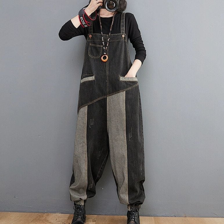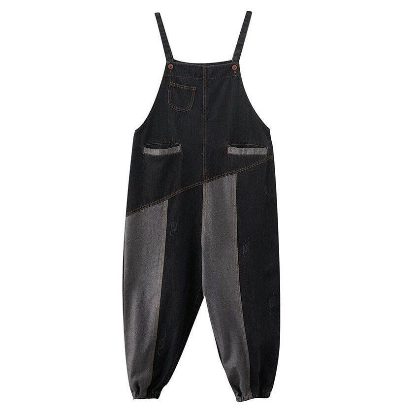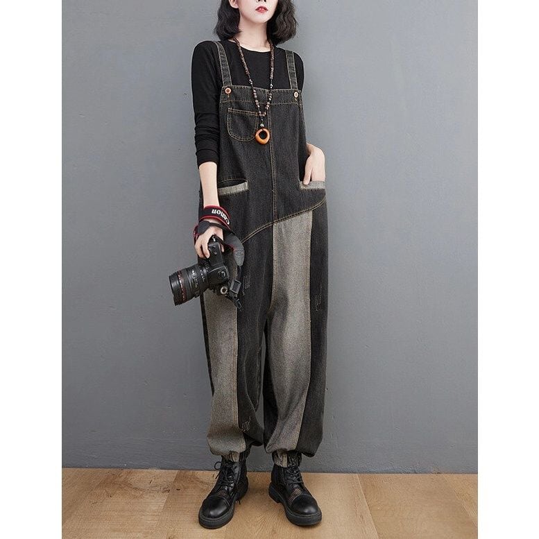 CONTRAST STITCH BLACK DENIM OVERALL 1color M-14493